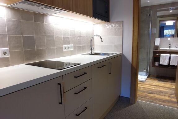 Das neu renovierte Appartement Schlossberg ist ein kompaktes 1-Raum-Appartement mit ca. 20 m² mit einer Wohn-, Schlaf- und Esszimmer-Kombination mit moderner voll ausgestatteter Küche, Doppelbett, Kleiderschrank, Sitzecke mit Tisch, Flat-Kabel-TV, Dusche/WC, Terrasse und kostenlosem W-Lan. Kleinkind bis 3 Jahre kostenfrei im Bett der Eltern möglich.