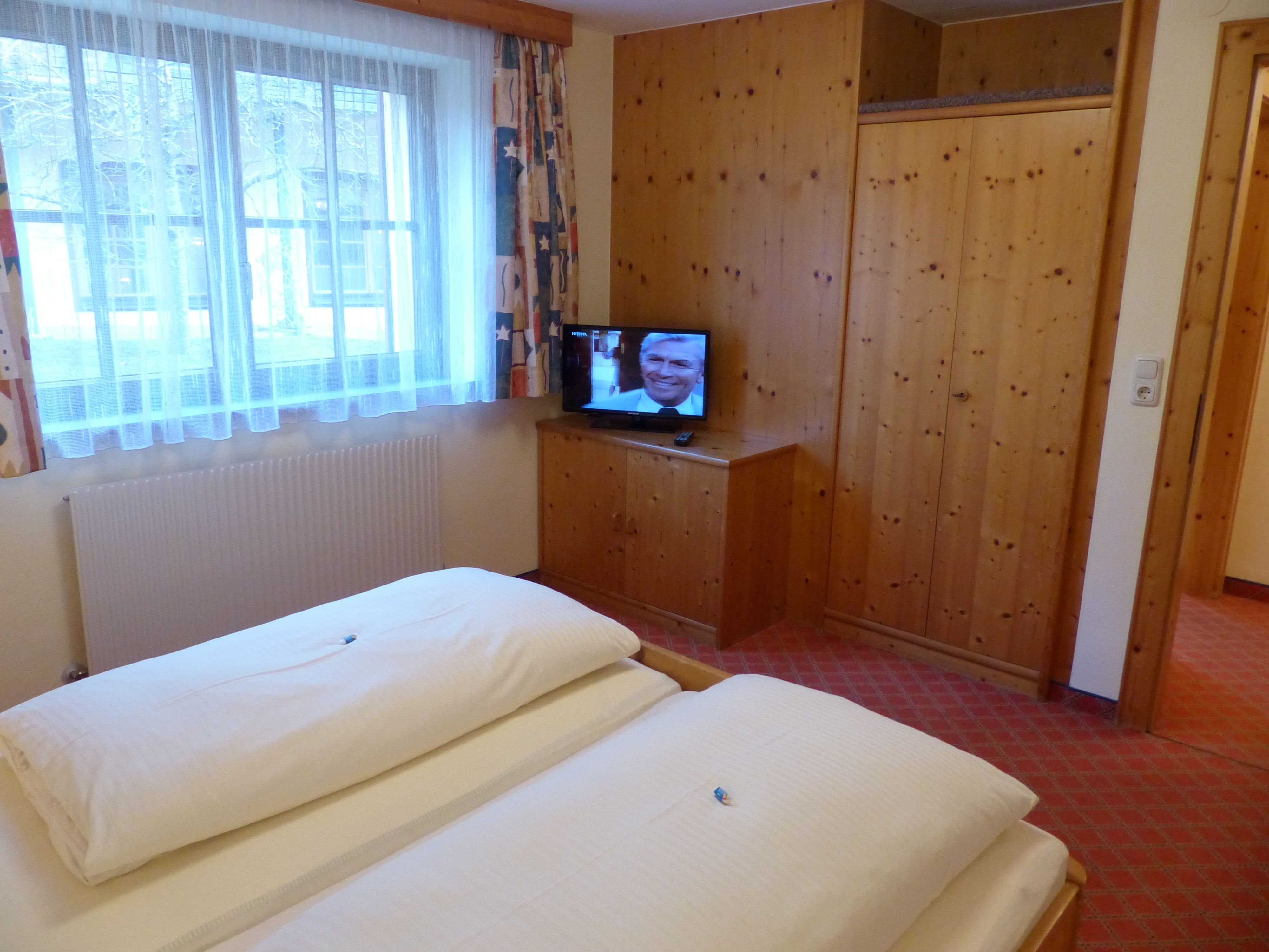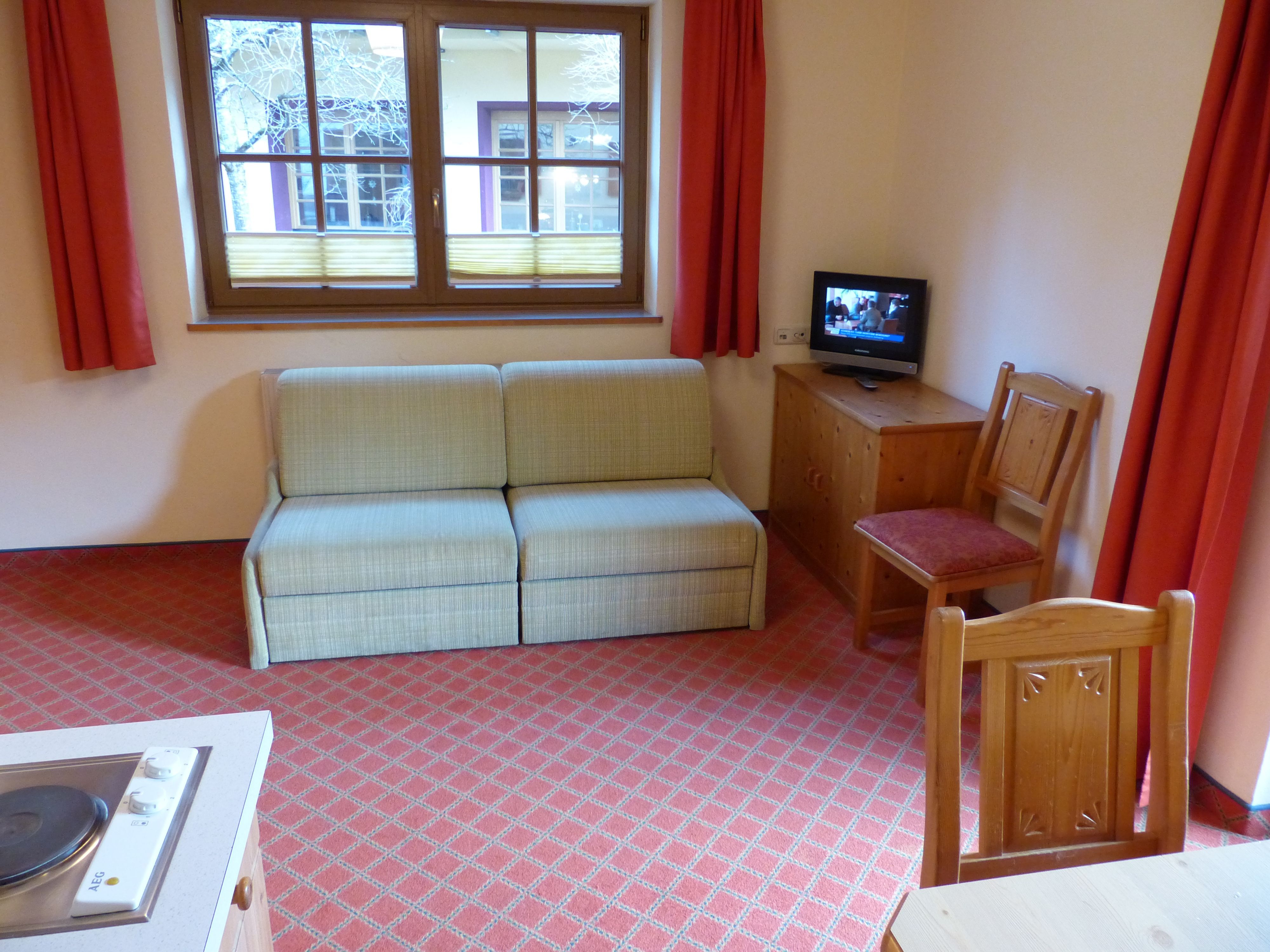 Das Appartement Säuling ist ein gemütliches 2-Zimmer-Appartement mit ca. 35 m² mit einem Schlafzimmer mit Doppelbett, Kleiderschrank und Flat-Kabel-TV und einer Wohn-/Esszimmer-Kombination mit einer Couch mit Ausziehfunktion, Kochnische, Kleiderschrank, Esstisch mit Stühlen, Flat-Kabel-TV sowie Dusche/WC, Balkon und kostenlosem W-Lan.
