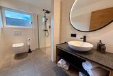 Abseits der Zufahrtsstraße und nach Süden ausgerichtet, erwartet dich auf rund 60 m² ein stilvolles Urlaubszuhause mit Sichtdachstuhl und liebevollen Details: zwei Schlafzimmer, ein helles Badezimmer mit Regendusche sowie ein zusätzlich separates WC.