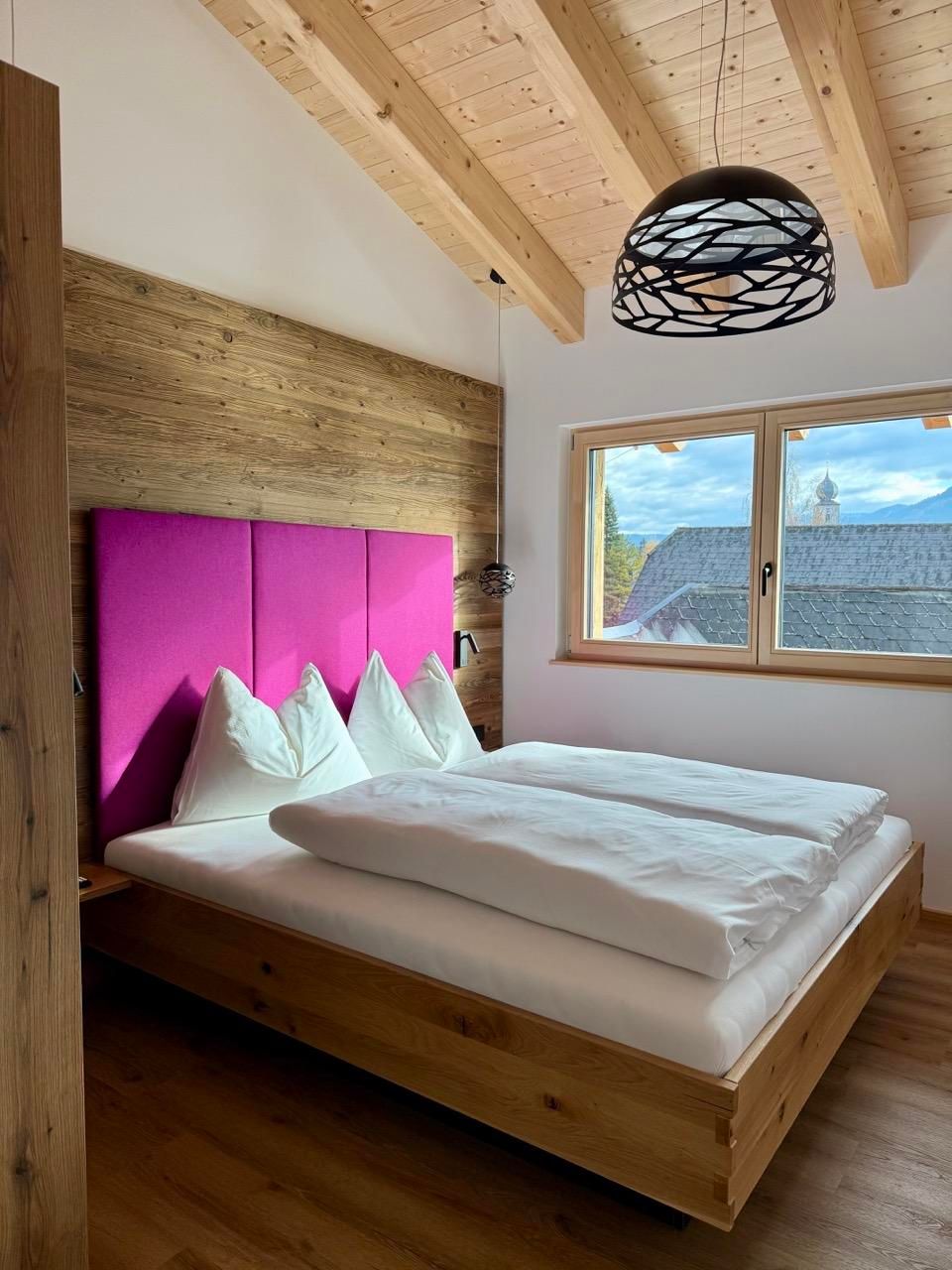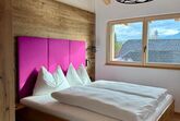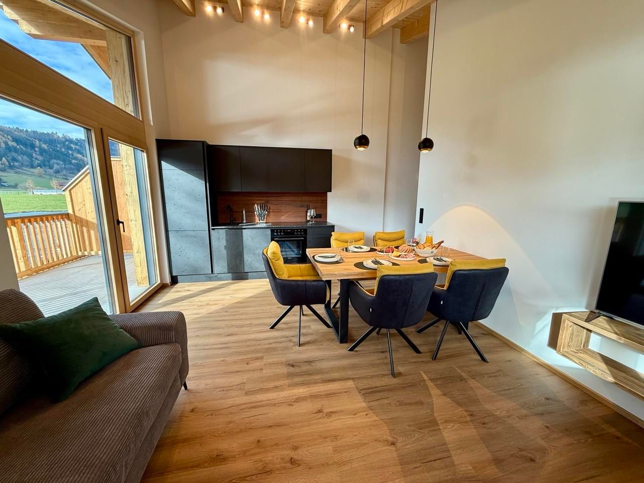 Unser Penthouse HERTA liegt im ersten Stock und begeistert mit einem traumhaften Blick auf die umliegenden Berge und die grüne Natur – ein Rückzugsort zum Durchatmen, Ankommen und Wohlfühlen.