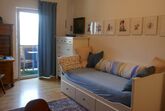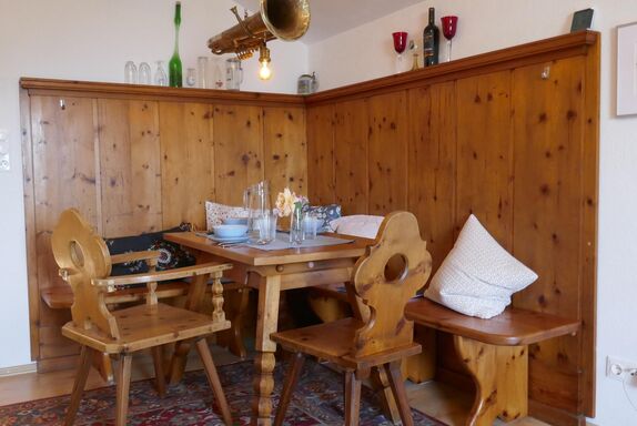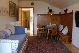 Das Apartement Top 4 mit ca. 39 m² besteht aus: ein östliches Schlafzimmer mit (160x200) Doppelbett mit Kommode; eine voll ausgestattete Gangküche mit allen Geräten sowie eine Garderobe mit Kleiderschrank, eine Schuhkommode im Stiegenhaus. Der Wohnraum mit Zirben-Essecke für 4 Personen, Smart-TV, ein antiker Sekretär mit eingebauten Steckdosen, WLAN-Netz, weiters eine Doppelausziehcouch (80x200 Ikea Hemnes Tagesbett als Schlafmöglichkeit für eine dritte und vierte Person). Das Badezimmer ist mit Dusche, WC und IR-Deckenheizung ausgestattet. Westbalkon mit ca. 3 m², Sitzecke und unverbauter Aussicht, siehe letzter Teil des Panoramavideos.