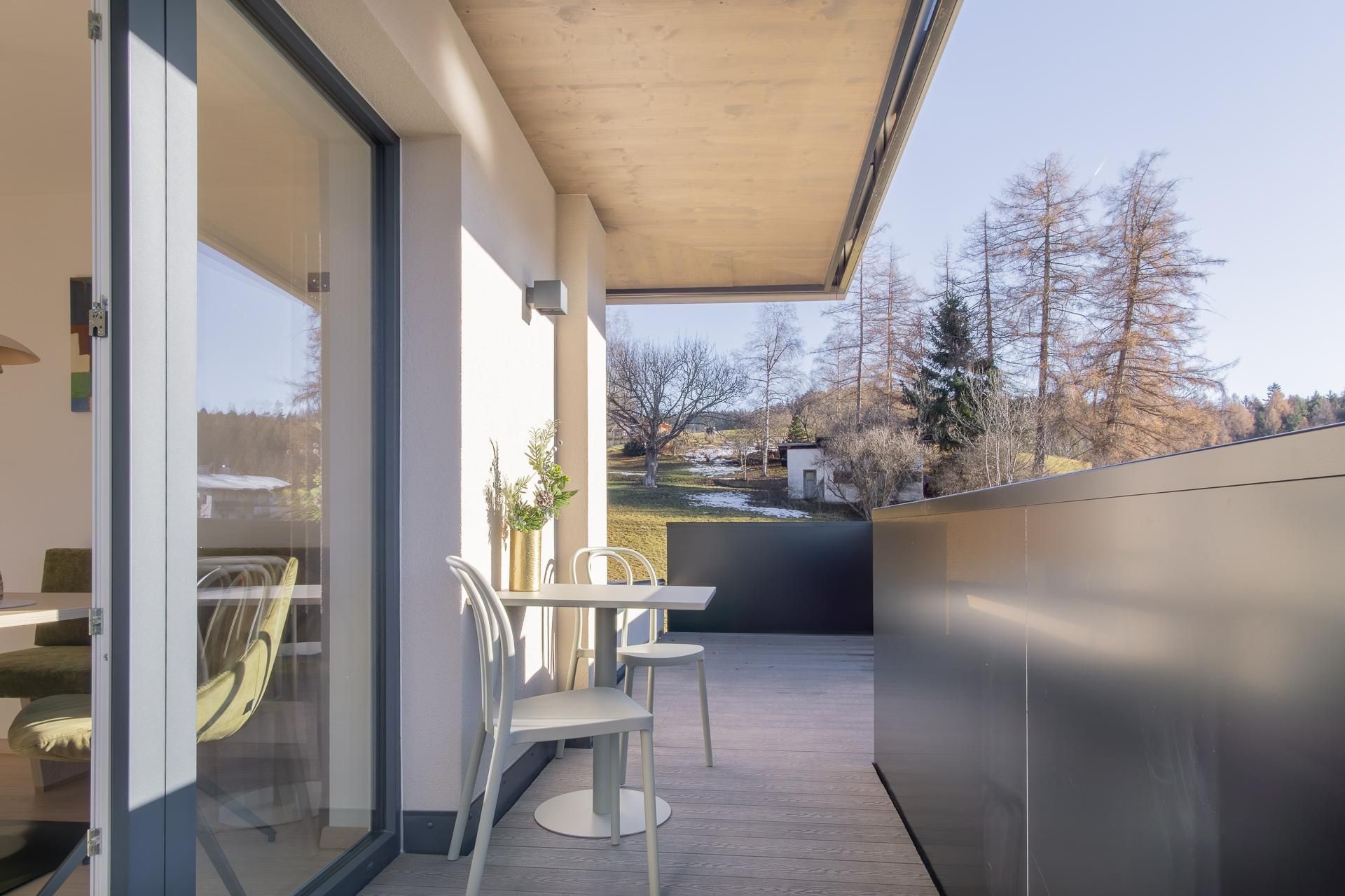 Appartement 1 mit Schlafzimmer und Schlafcouch für 3.Person oder Kind. Wohnzimmer mit Küchenzeile, großes Bad mit Dusche und WC extra. Balkon mit kleiner Terasse. Parkettböden. Ausblick auf Wald, Wiese, Berge und ins Tal. Alles wurde neu errichtet und mit einer persönlichen Note liebevoll eingerichtet.