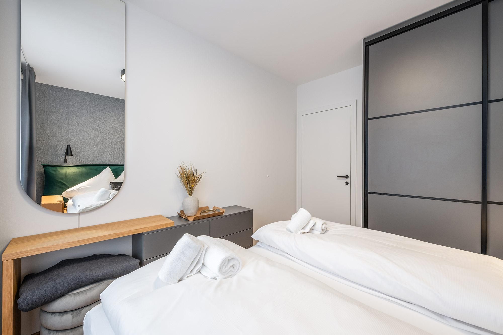 Großzügige Grundrisse, harmonische Materialien und durchdachte Raumkonzepte schaffen ein sofortiges Wohlgefühl. Die Apartments bieten je nach Einheit komfortable Schlafzimmer, moderne Wohnbereiche sowie voll ausgestattete Küchen oder Wohnküchen – perfekt für Paare, Familien oder kleine Gruppen.