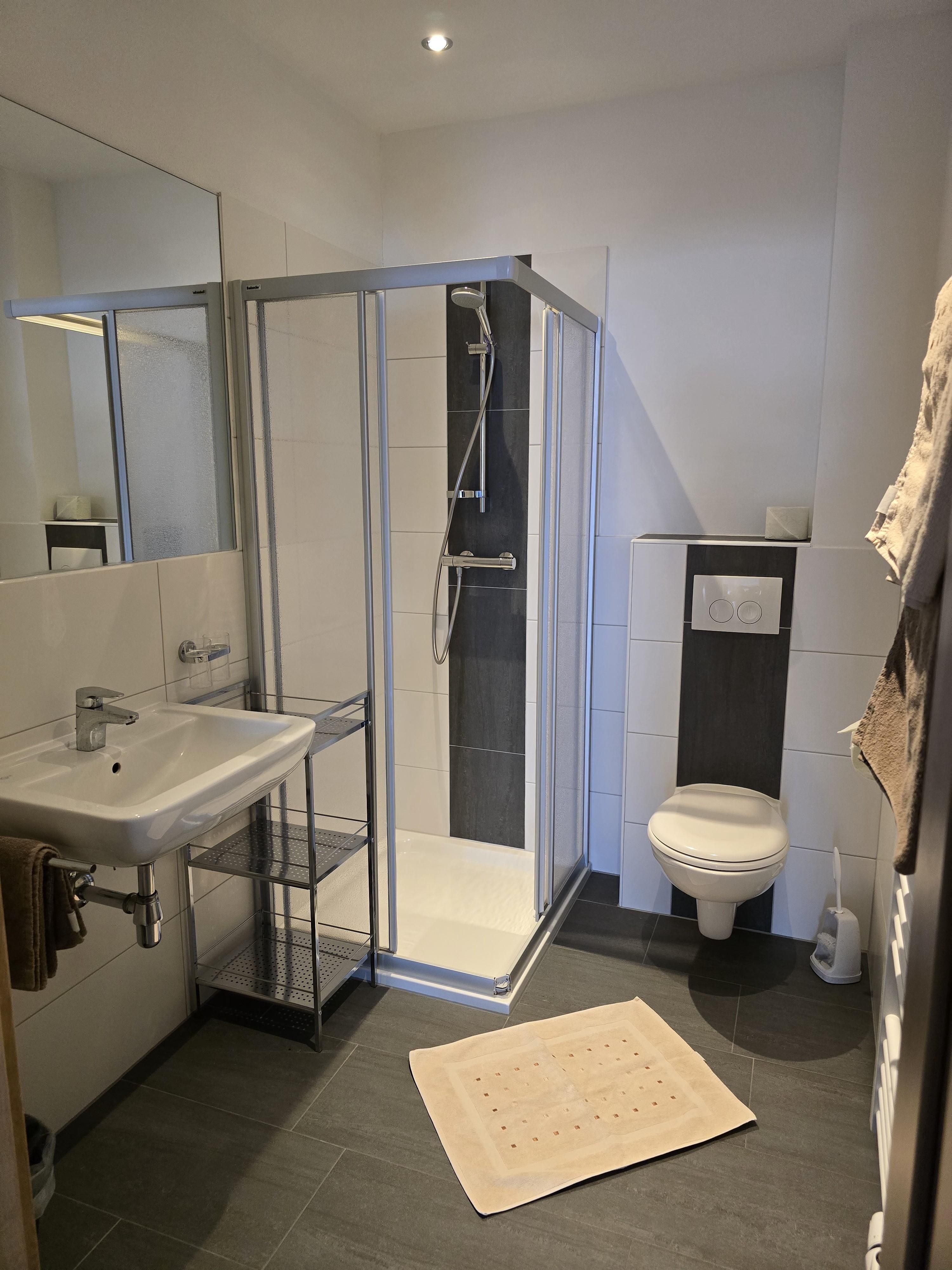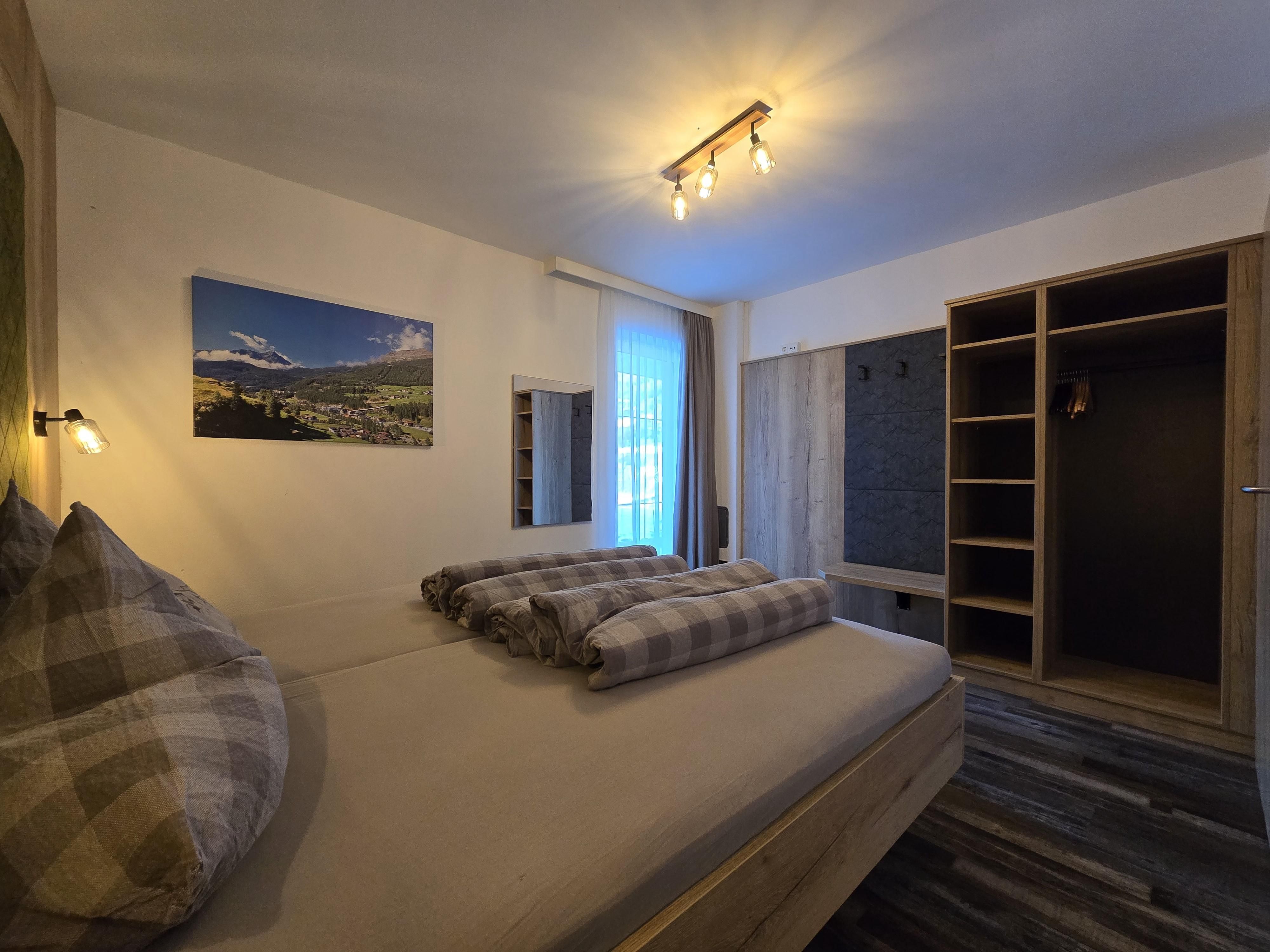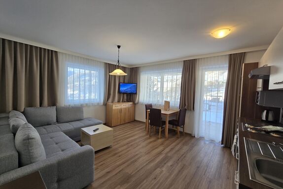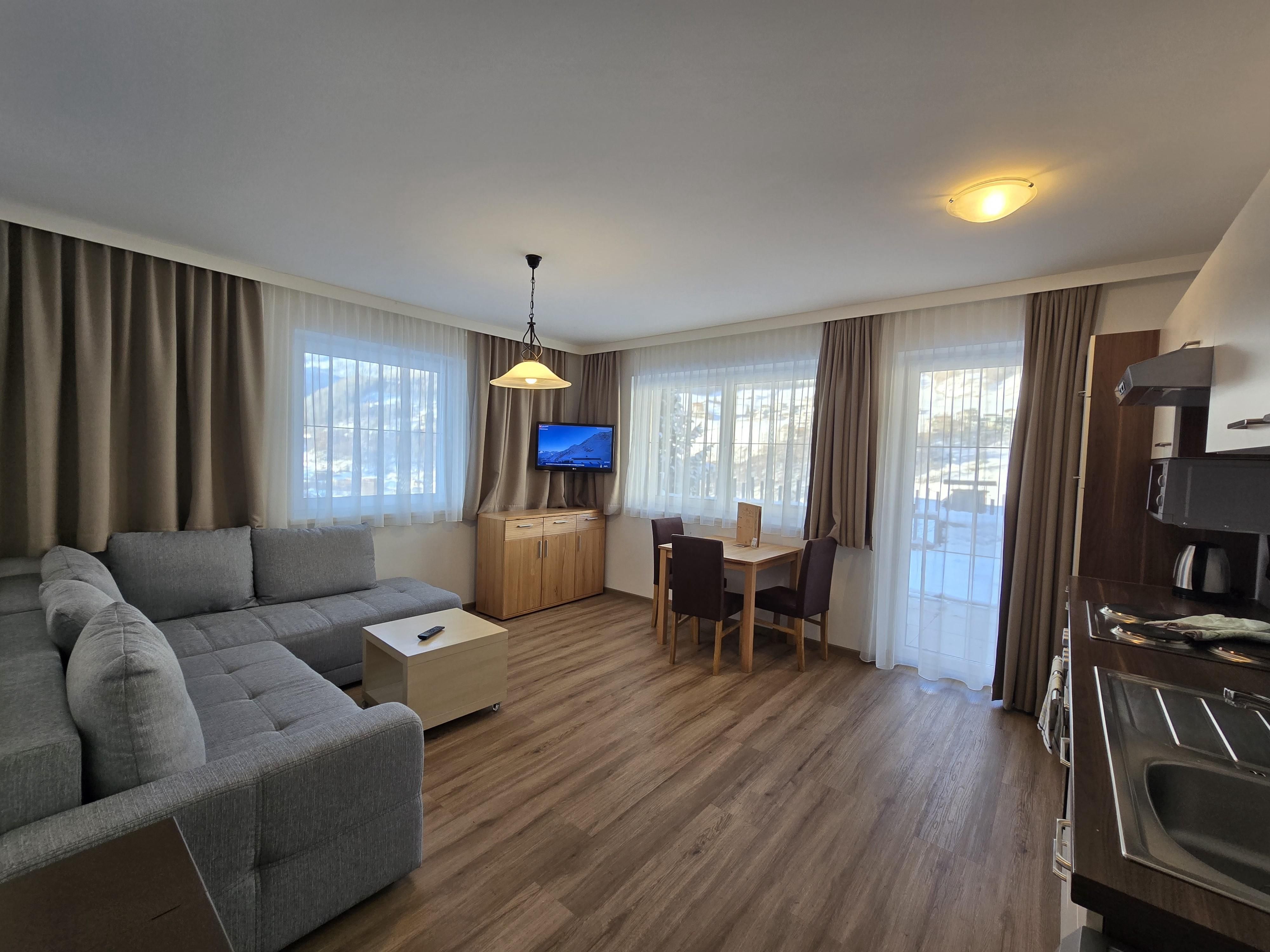 Das Appartement „Bergblick“ (ca. 40 m²) verfügt über ein Doppelzimmer abgetrennt mit Dusche/WC. Die voll ausgestattete, separate Wohnküche (Backofen, 4-Platten-Herd, Kühlschrank mit Gefrierfach, Spülmaschine, Mikrowelle, Wasserkocher) bietet außerdem eine gemütliche Couch und einen Flat-TV. Von der Terrasse mit Garten aus genießt man einen wunderschönen und unvergesslichen Ausblick.