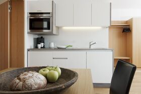 moderne Küchenausstattung (Backofen mit Mikrowellenfunktion |Geschirrspülmaschine |Kaffepadsmaschine)