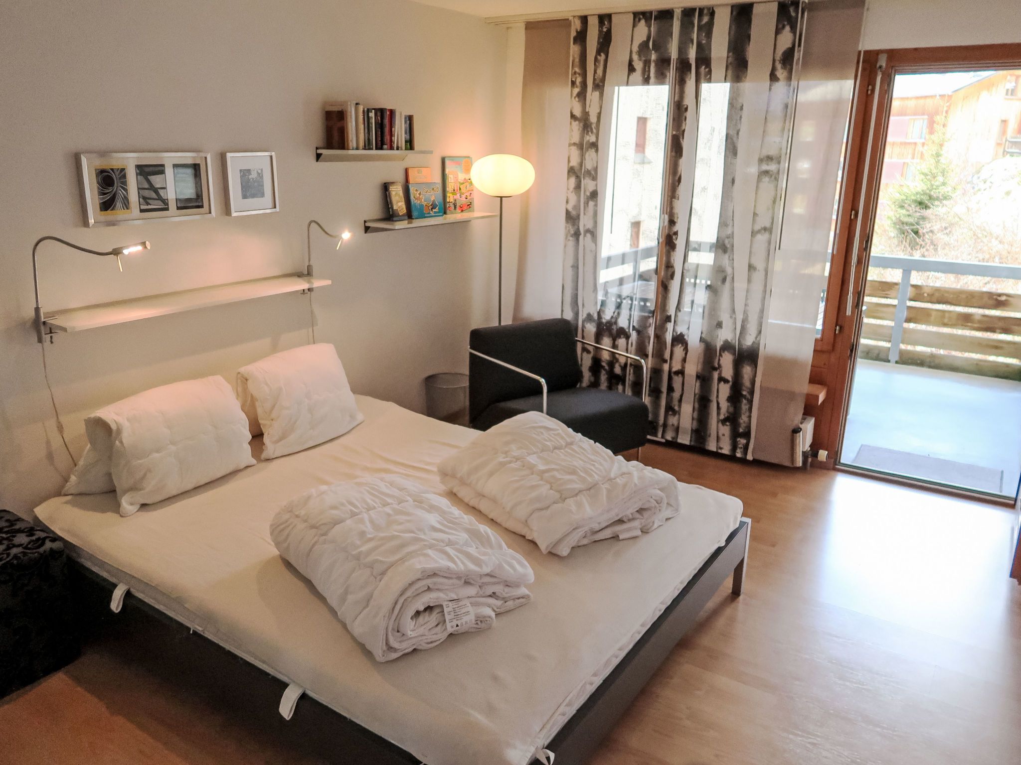 Encarden Apt. 3.1, 2-Zimmer-Wohnung 63 m2, unteres Geschoss. Komfortabel und gemütlich eingerichtet: Wohn-/Esszimmer mit 1 Doppelwandschrankbett und Kabel-TV (Flachbildschirm). 1 Doppelzimmer mit Dusche/WC. Ausgang zum Balkon. Offene Küche (Backofen, Geschirrspüler, 4 Glaskeramikplatten, Toaster, Wasserkocher, Tiefkühler, elektrische Kaffeemaschine, Kapseln für die Kaffeemaschine (Delizio), Racletteofen, Fondue Set (Käse)). Bad/WC. Balkon, Westlage. Balkonmöbel. Seitliche Sicht auf die Berge und die Landschaft. Zur Verfügung: Internet (WLAN, gratis). Parkplatz, Garage Nr. 4 beim Haus. Bitte beachten: Nichtraucher-Unterkunft.