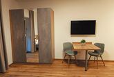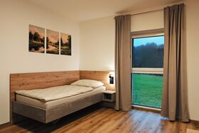 Genießen Sie den Komfort und Stil unseres brandneuen Gästezimmers mit hochwertiger Tischler-Einrichtung. Die hellen, lichtdurchfluteten Räume bieten ein Einzelbetten (extralang: 100×200cm) für optimalen Schlaf. Die voll ausgestattete Kochnische lässt keine Wünsche offen: Sie beinhaltet Backofen, Kochplatte, Mikrowelle, Kühlschrank sowie eine Kaffee-Espressomaschine und Teekocher. Zur weiteren Ausstattung gehören ein modernes Bad (Dusche/WC/Fön), kostenloses WLAN, SAT-TV und eine separate Rauchgelegenheit.