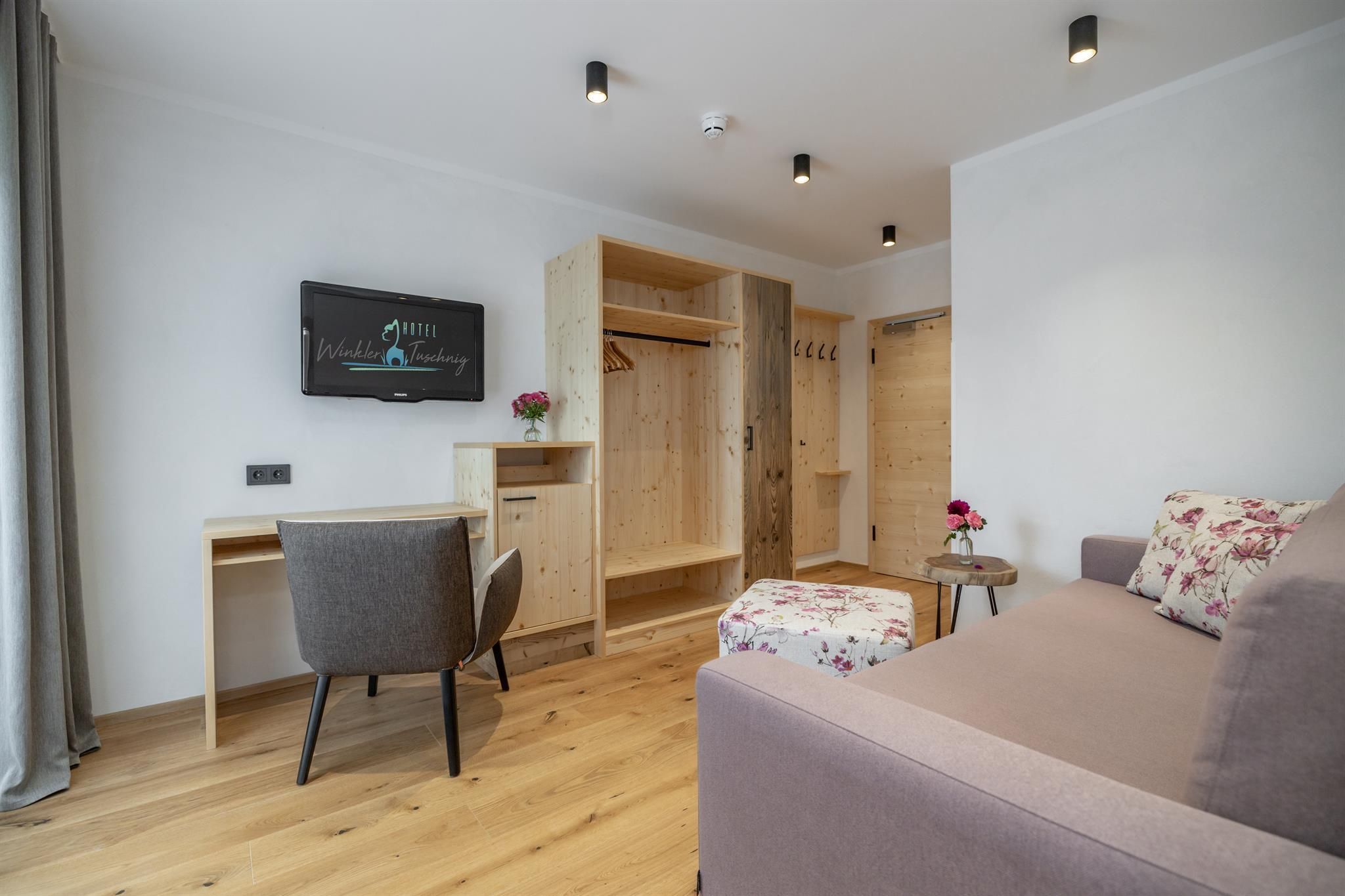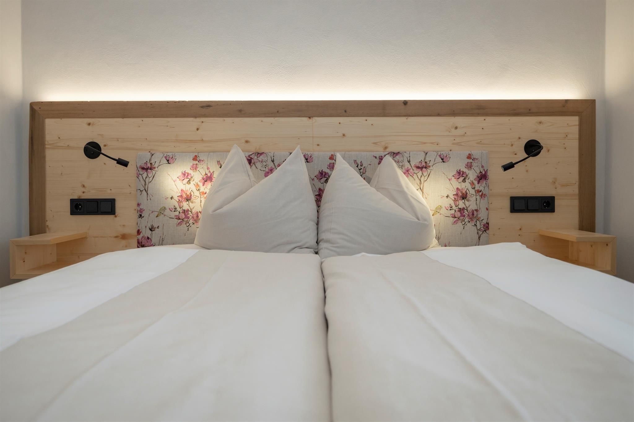 • Eichenholzböden und Fichtenmöbel mit Altholzelementen sowie edle Stoffe sorgen für heimeliges Wohlbefinden