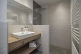 • Badezimmer mit Regendusche, Handtuchtrockner, Haarföhn und im Winter Fußbodenheizung, separates WC