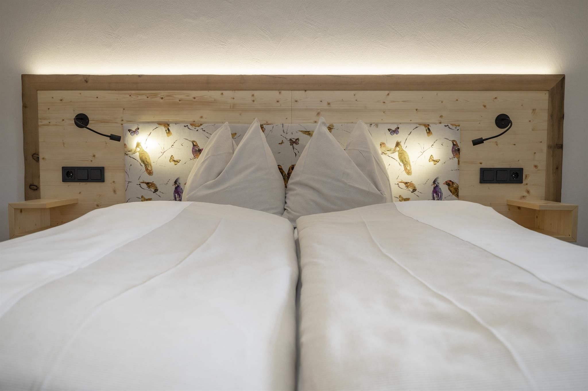 • Eichenholzboden und Fichtenmöbel mit Altholzelementen sowie edle Stoffe sorgen für heimeliges Wohlbefinden