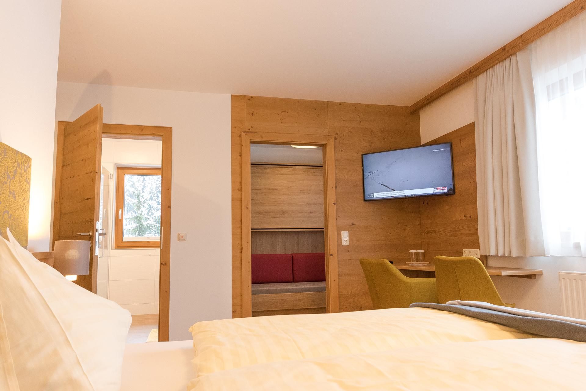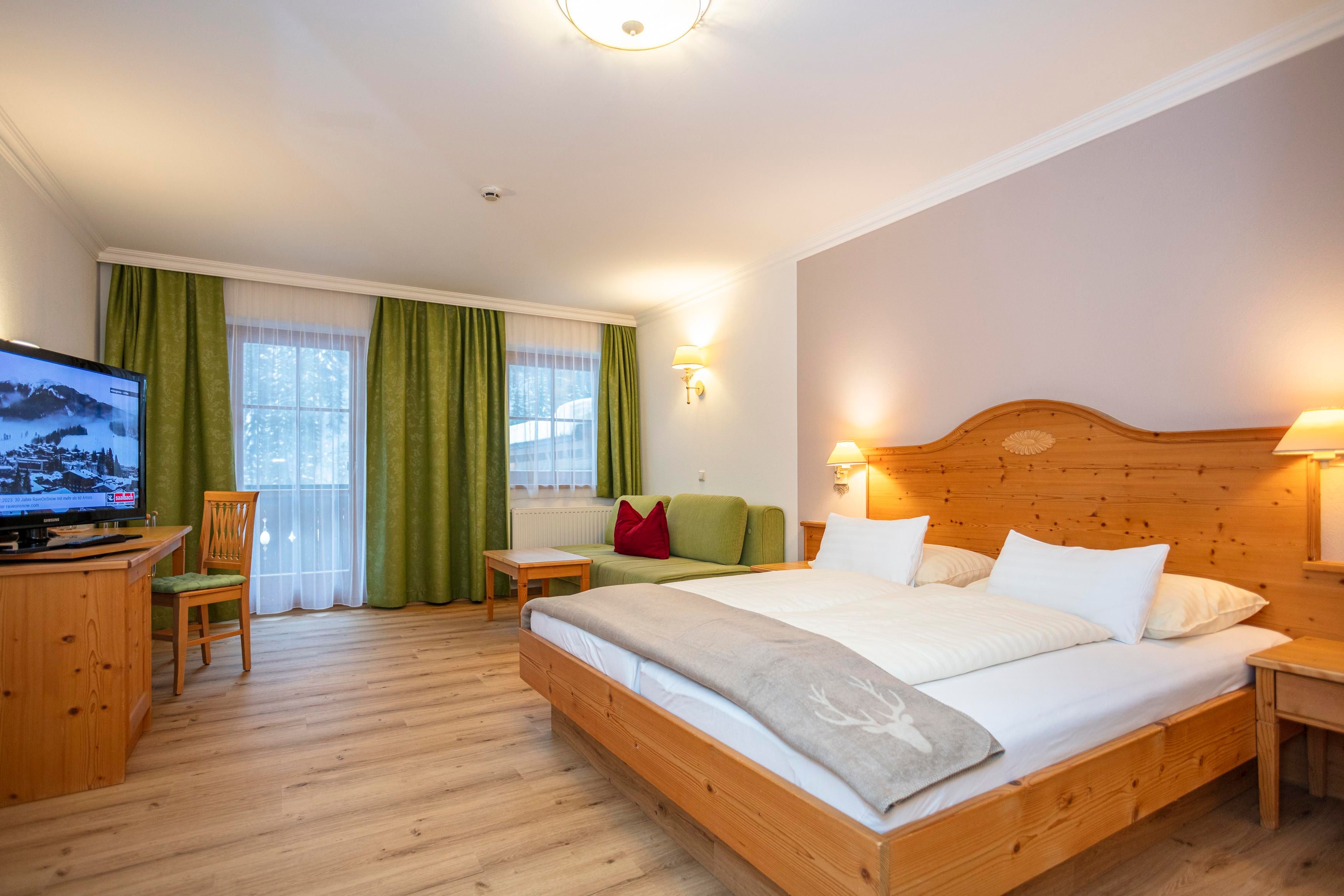 Unsere TOP-Komfortzimmer im Oberwirt im Glemmtal sind im alpinen Stil und mit hellen Möbeln eingerichtet. Die Zimmer verfügen entweder über einen Süd-, West oder Nord-Balkon. Die Zimmer sind ausgestattet mit einem 32“ Flachbildschirm-TV, Telefon, Safe, Dusche und WC, Haarföhn, Kosmetikspiegel und einem Badezimmerradio. Internetzugang über Netzwerkkabel und WLAN möglich.