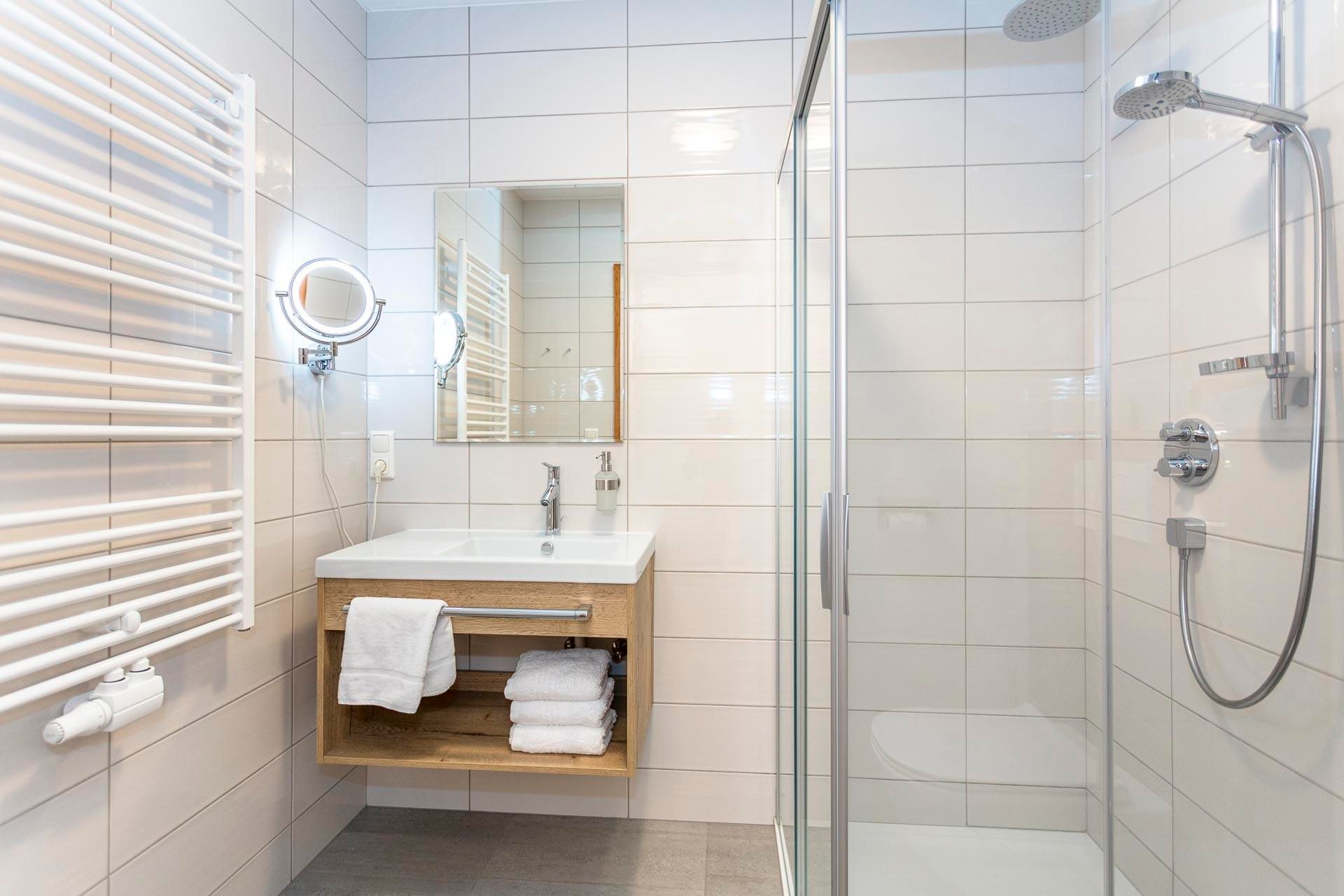 Das moderne Badezimmer ist mit einer Regendusche ausgestattet, und die Küche ist vollständig eingerichtet. Eine einladende Essecke mit Blick auf die atemberaubende Bergwelt zwischen Viehhofen und Zell am See sorgt für gemütliche Mahlzeiten. Auf dem Balkon lässt sich die Sonne genießen und der herrliche Ausblick in vollen Zügen erleben.