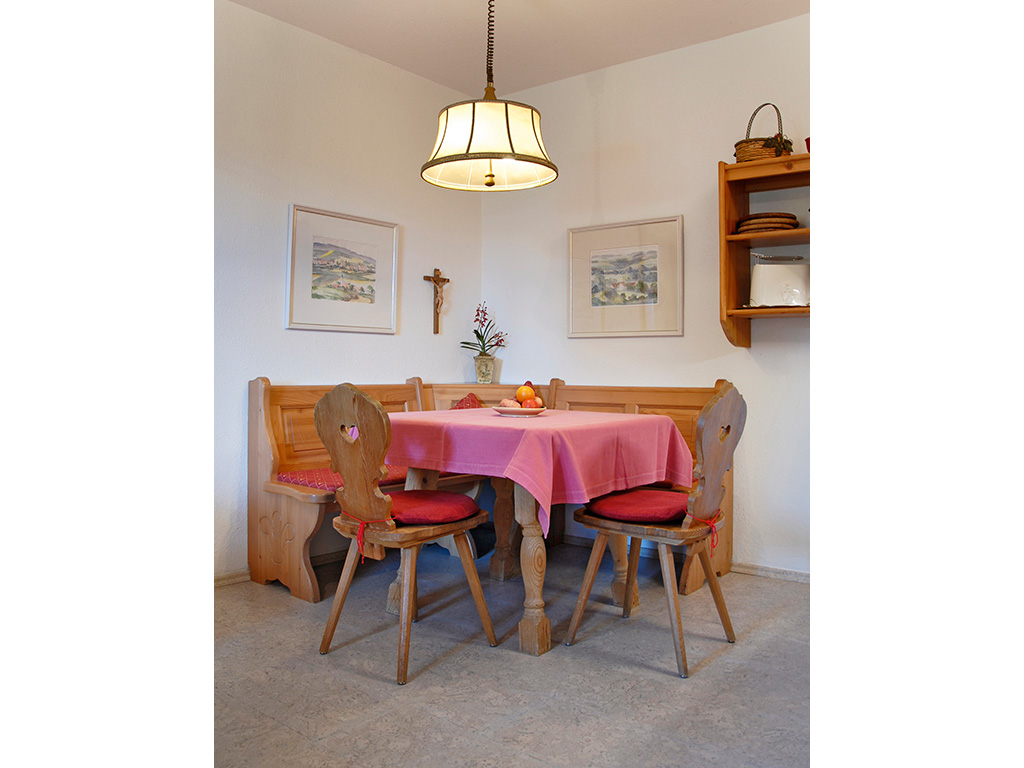 Ferienwohnung in Parterre für 2 Personen mit Doppelbett mit getrennten Matratzen und offenem Fußende und Schlafcouch. Terrasse am Zimmer. Küche mit Kaffee und Teekocher, Kaffeemaschine, Mikrowelle, Sitzgelegenheit, Toaster, Essecke, Kühlschrank. Bettwäsche und Handtücher vorhanden, Tisch- und Küchenwäsche vorhanden. Badezimmer mit Fenster, Dusche, separates WC und Fön. WLAN, CD-Player, Faxanschluss, Fernseher, Standspiegel, Telefon im Zimmer, Kosmetikspiegel, Nichtraucherzimmer. Bei uns wohnen Sie inmitten eines wun¬derschönen Parks. Rottal Terme, Ortskern und Golfpark errei¬chen Sie zu Fuß in wenigen Minuten. Ein heimischer Schreiner hat unsere Ferienwohnungen in warmen Fichtenholz stilvoll ausgestattet, wir haben sie farblich harmonisch dazu liebevoll eingerichtet. Dusche/WC wie Wohn- und Schlafzimmer sind separat. Terminservice für Arzt- und Therapiebesuche. Wandern und Walken beginnen Sie vor der Tür. Fahrräder stellen wir gratis. Und ein paar Extras verraten wir Ihnen noch nicht...