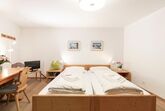 Gemütliches Studio im Engadinerstil mit Arvenmöbeln, Esstisch und praktischer Schrankküche. Ideal für 1–2 Personen.
