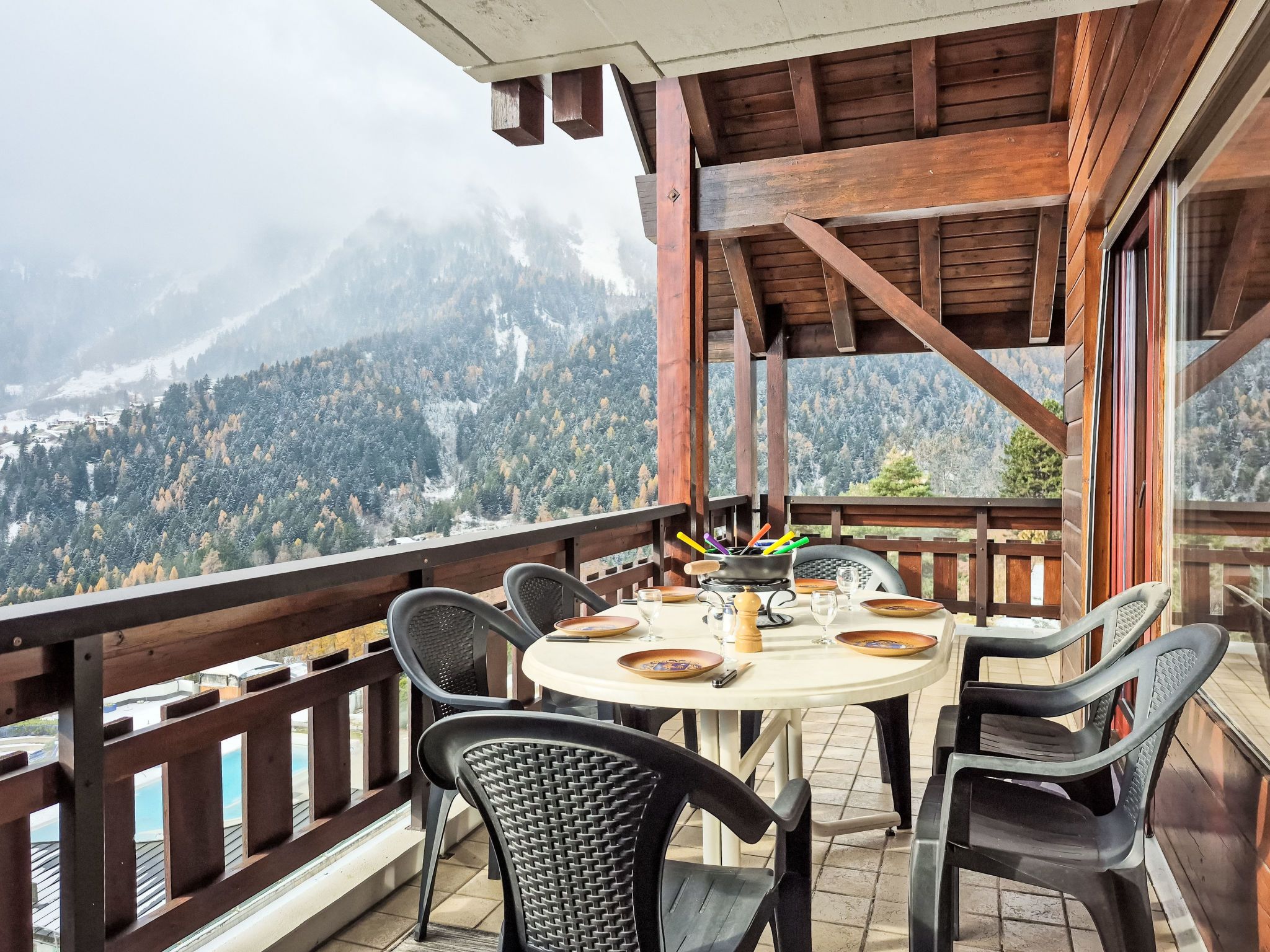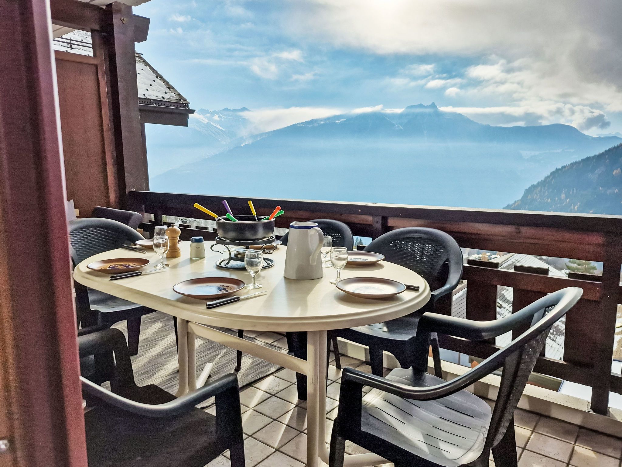 Les Thermalies 202, 3-Zimmer-Wohnung 79 m2 auf 2 Stockwerken im 2. Stock, Südlage. Hell, teilweise renoviert im Jahre 2025, komfortabel und geschmackvoll eingerichtet: Wohn-/Esszimmer mit Kabel-TV. Ausgang zum Balkon. Offene Küche (Backofen, Geschirrspüler, 4 Glaskeramikplatten, Toaster, Wasserkocher, elektrische Kaffeemaschine, Kapseln für die Kaffeemaschine (Nespresso) extra, Racletteofen, Fondue Set (Chinoise, Käse)). Sep. WC. Obergeschoss: 1 abgeschrägtes grosses Zimmer mit 1 franz. Bett (180 cm, Länge 200 cm). Ausgang zum Balkon. 1 abgeschrägtes Zimmer mit 1 x 2 Etagenbetten (90 cm, Länge 200 cm), 1 franz. Bett (160 cm, Länge 200 cm). Ausgang zum Balkon. Bad/WC. 2 Balkone 15 m2, Südwestlage. Balkonmöbel, Liegestühle (6), Sitzplatz. Herrliche Sicht auf die Berge, das Schwimmbad und den Wald. Zur Verfügung: Bügeleisen, Kinderhochstuhl, Babybett, Haartrockner. Internet (WLAN, gratis). Garage Nr. 202 (1 Auto), Höhe 215 cm, Breite 250 cm. Bitte beachten: geeignet für Familien. Kühlschrank ohne Gefrierfach, Nichtraucher-Unterkunft.