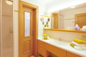 Ferienwohnung in Parterre für 2 Personen mit Doppelbett mit getrennten Matratzen und offenem Fußende und Schlafcouch. Terrasse am Zimmer. Küche mit Kaffee und Teekocher, Kaffeemaschine, Mikrowelle, Sitzgelegenheit, Toaster, Essecke, Kühlschrank. Bettwäsche und Handtücher vorhanden, Tisch- und Küchenwäsche vorhanden. Badezimmer mit Fenster, Dusche, separates WC und Fön. WLAN, CD-Player, Faxanschluss, Fernseher, Standspiegel, Telefon im Zimmer, Kosmetikspiegel, Nichtraucherzimmer. Bei uns wohnen Sie inmitten eines wun¬derschönen Parks. Rottal Terme, Ortskern und Golfpark errei¬chen Sie zu Fuß in wenigen Minuten. Ein heimischer Schreiner hat unsere Ferienwohnungen in warmen Fichtenholz stilvoll ausgestattet, wir haben sie farblich harmonisch dazu liebevoll eingerichtet. Dusche/WC wie Wohn- und Schlafzimmer sind separat. Terminservice für Arzt- und Therapiebesuche. Wandern und Walken beginnen Sie vor der Tür. Fahrräder stellen wir gratis. Und ein paar Extras verraten wir Ihnen noch nicht...