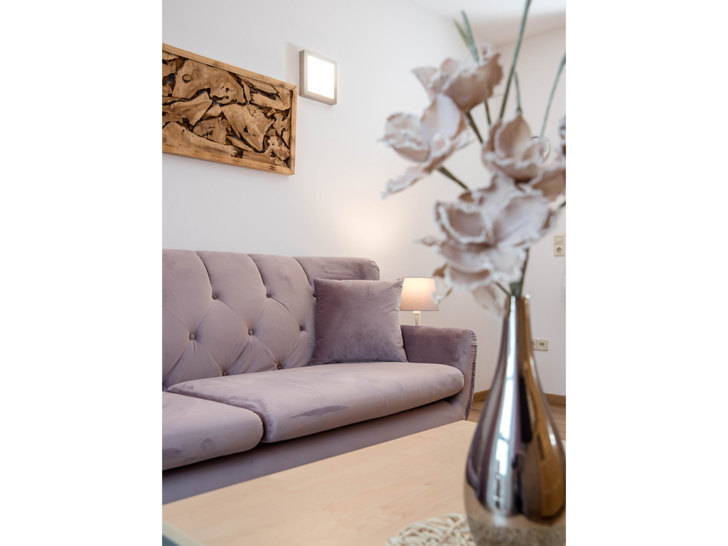 Die Wohnung ist für bis zu zwei Personen ausgelegt und ist modern, geschmackvoll und gemütlich eingerichtet. Auf 50qm finden unsere Gäste ein Schlafzimmer, welches vom Wohnbereich getrennt ist. Im Schlafzimmer befindet sich ein Doppelbett - Bettwäsche ist vorhanden. Der Wohnbereich, ausgestattet mit bequemer Couch und einem TV, ist der Zugang zum großzügigen Balkon. Eine separate Küchenzeile mit Kochplatten, Kaffee und Teekocher, Kaffeemaschine, Kühlschrank, Toaster etc. steht bereit. Das Badezimmer ist mit WC und Dusche ausgestattet. Es würde uns freuen, wenn wir Sie in unserem Haus begrüßen dürfen - Ihre Familie Geisberger