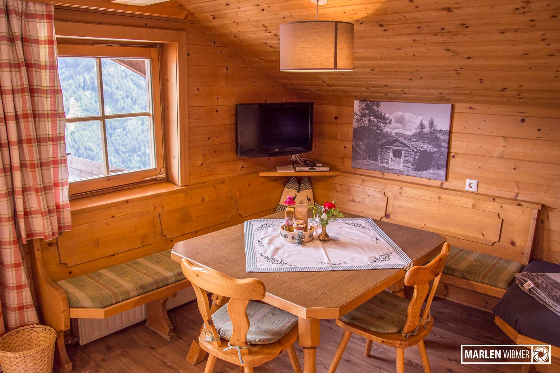 FeWo Virgen ist ausgestattet (im rustikalem Stil mit viel Holz) mit Wohnküche (neuem Küchenblock) u. Südbalkon, neu renovierter Dusche/WC, Doppelbettzimmer, Zweibettzimmer Zedlach mit Zusatzbad, Garderobe und Abstellraum. Tafel- und Kochgeschirr, Handtücher, Föhn und Bettwäsche sind ausreichend vorhanden.