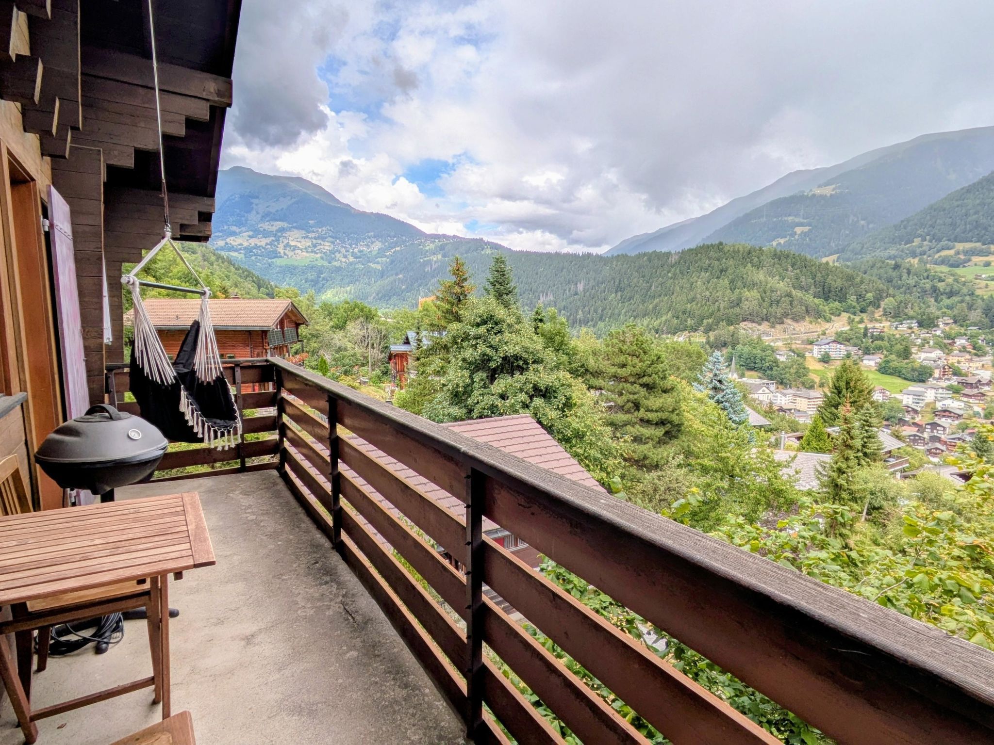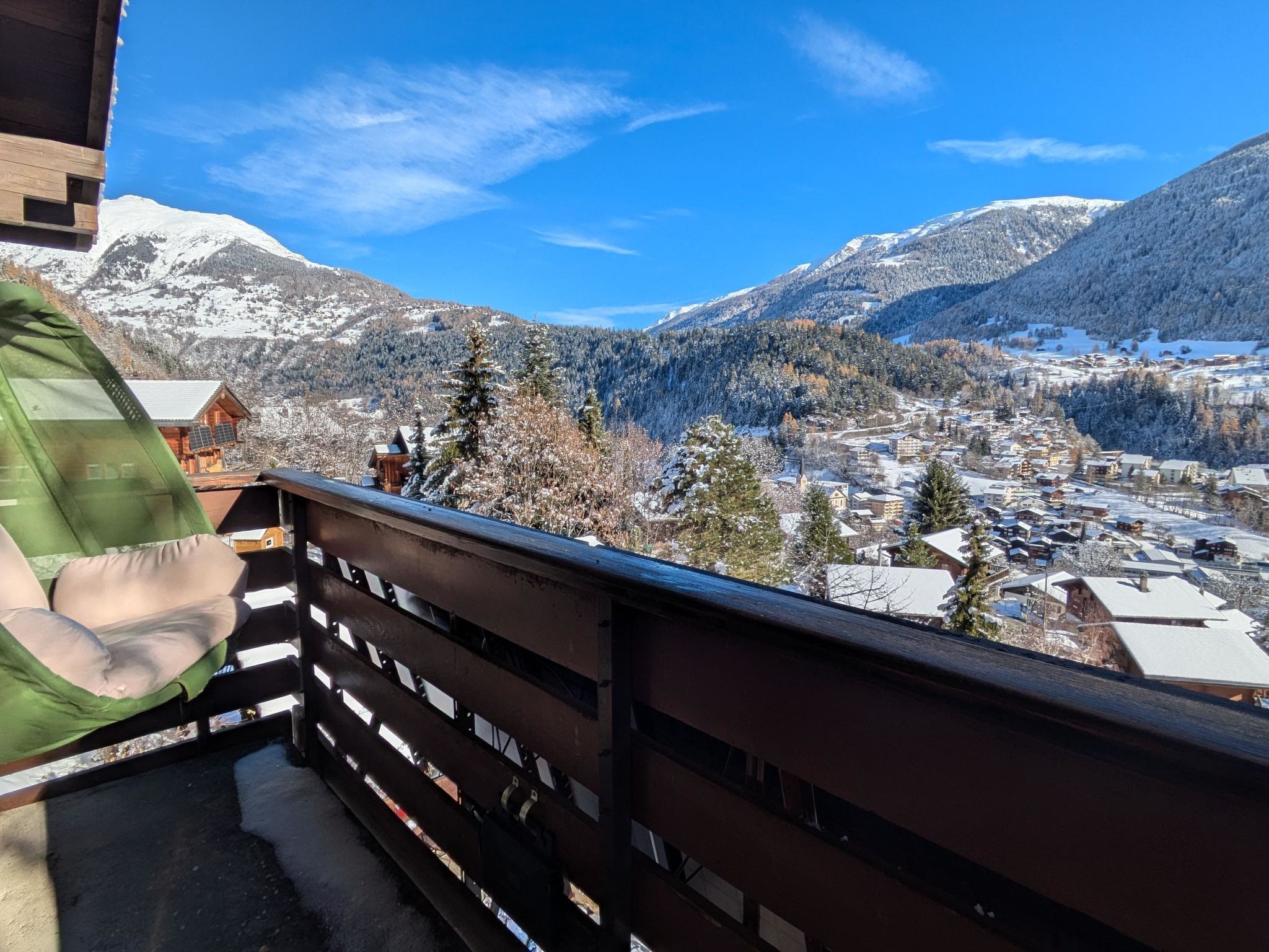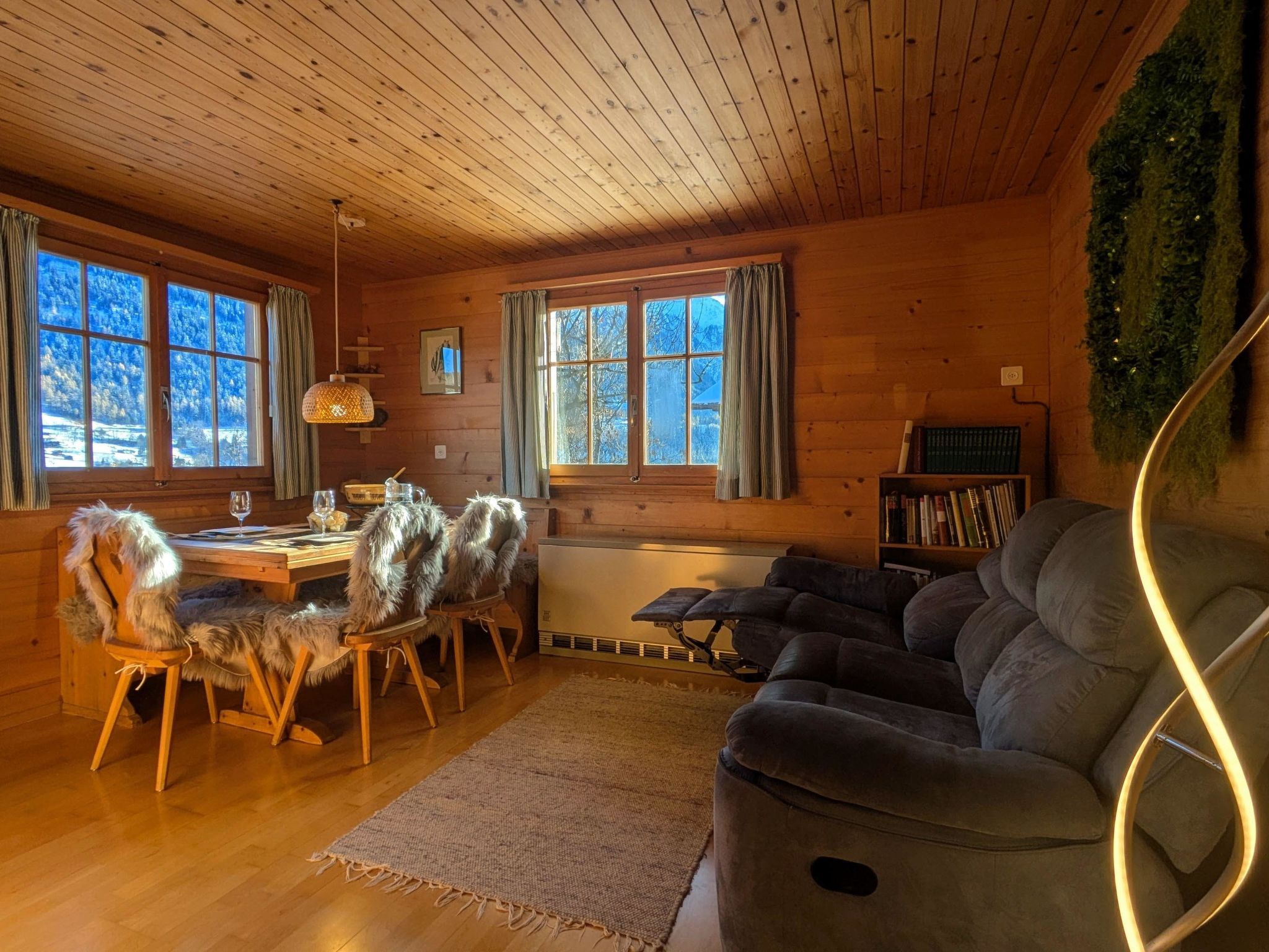 55 m2. Weitere Angaben des Anbieters: Das Chalet Ember liegt idyllisch am Waldrand in ruhiger Umgebung mit schönem Blick über das Tal. Besondere Entspannung bietet der Garten mit Sauna und Whirlpool – ideal zum Abschalten nach einem aktiven Tag. Vom Parkplatz aus erfolgt der Zugang über eine Treppe (78 Stufen). Trotz der naturnahen Lage erreichst du Einkaufsmöglichkeiten und den öffentlichen Verkehr bequem in etwa 10 bis 15 Gehminuten. Ob für sportliche Aktivitäten in den Bergen oder erholsame Tage in der Natur – das Chalet bietet dir die passende Basis für vielseitige Ferien in Fiesch. Im Chalet Ember erwarten dich drei Schlafzimmer und ein gemütlicher Wohnbereich mit direktem Zugang zum Balkon samt Hängesessel. Die Küche ist umfangreich ausgestattet mit Ofen, Geschirrspüler, Mikrowelle, Kaffeemaschine, Mixer, Toaster, Raclette- und Fondue-Set. Für Arbeit oder längere Aufenthalte stehen ein Homeoffice-Bereich sowie Waschmaschine und Trockner zur Verfügung. Internet und ein Smart TV sorgen zusätzlich für Komfort während deines Aufenthalts. Mietpreis exklusive: Bettwäsche, Endreinigung, Kurtaxe.
