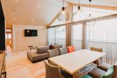 Eines unserer zwei Herzstücke, die Panoramasuite Mountain Alpin im Dachgeschoss, lässt Euer Herz höherschlagen und raubt Euch beim Ausblick auf die unverbaute Bergwelt sprichwörtlich den Atem. Großfamilien mit Oma und Opa im Gepäck oder eine Runde mit deinen Herzensmenschen, hier findet ihr Euer perfektes Urlaubsdomizil. Umgeben von Fichtenvollholz, eingerichtet mit natürlichen Materialien in Kombination mit dunklen Akzenten besticht diese Suite mit einer exklusiven Ausstattung. Drei separate Schlafzimmer, davon zweimal mit Doppelbetten und Glasfaser-TV eingerichtet, das dritte Zimmer bietet ein Stockbett und zwei Einzelbetten. Großzügiger und offen gestalteter Wohn-Essbereich mit vollausgestatteter Küche (ohne Mikrowelle), Glasfaser-TV und raumhohe Glasfronten. Zwei Badezimmer mit Walk-In Regendusche und WC’s. Telefon, Safe und kostenloses WLAN.