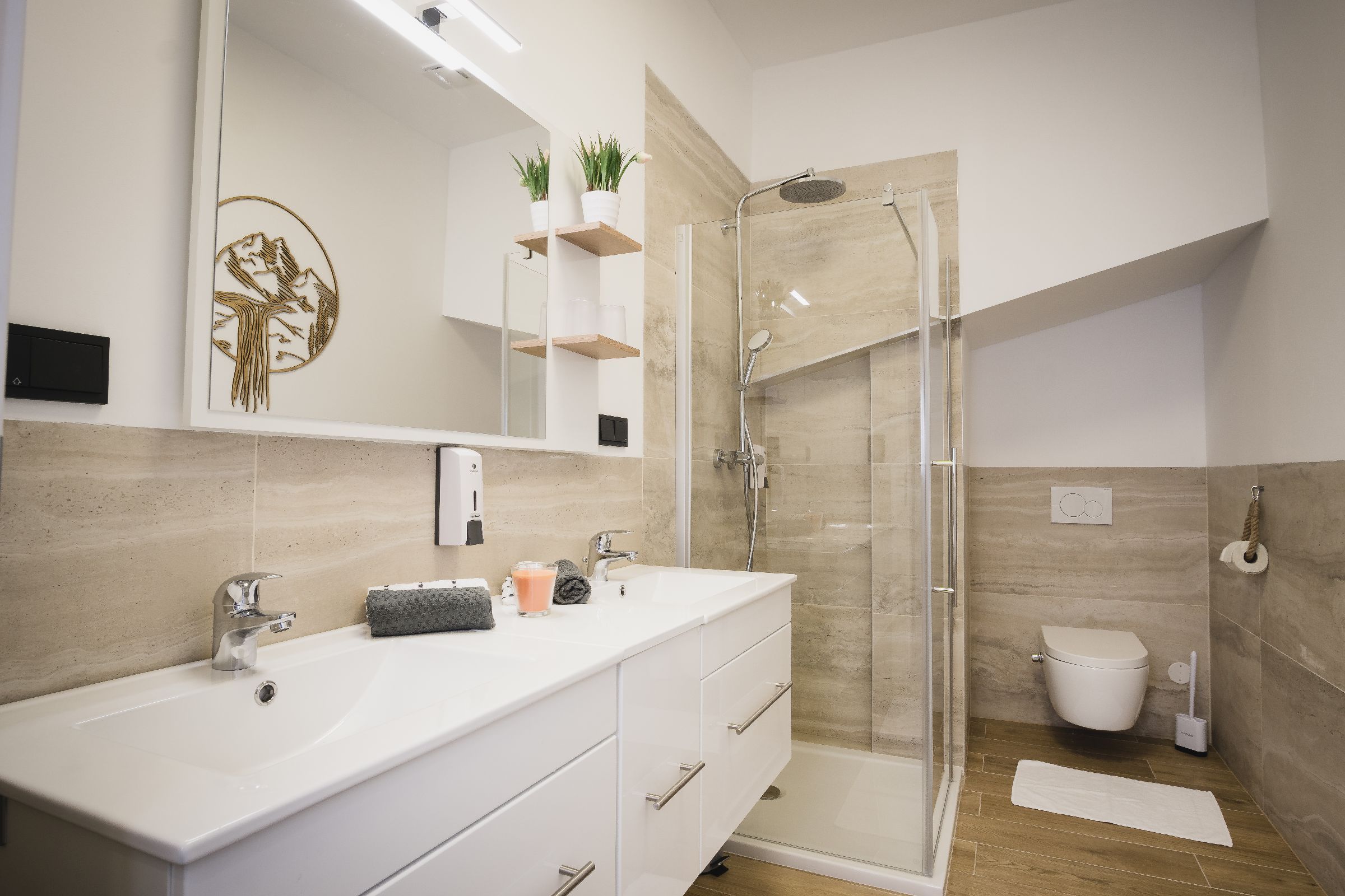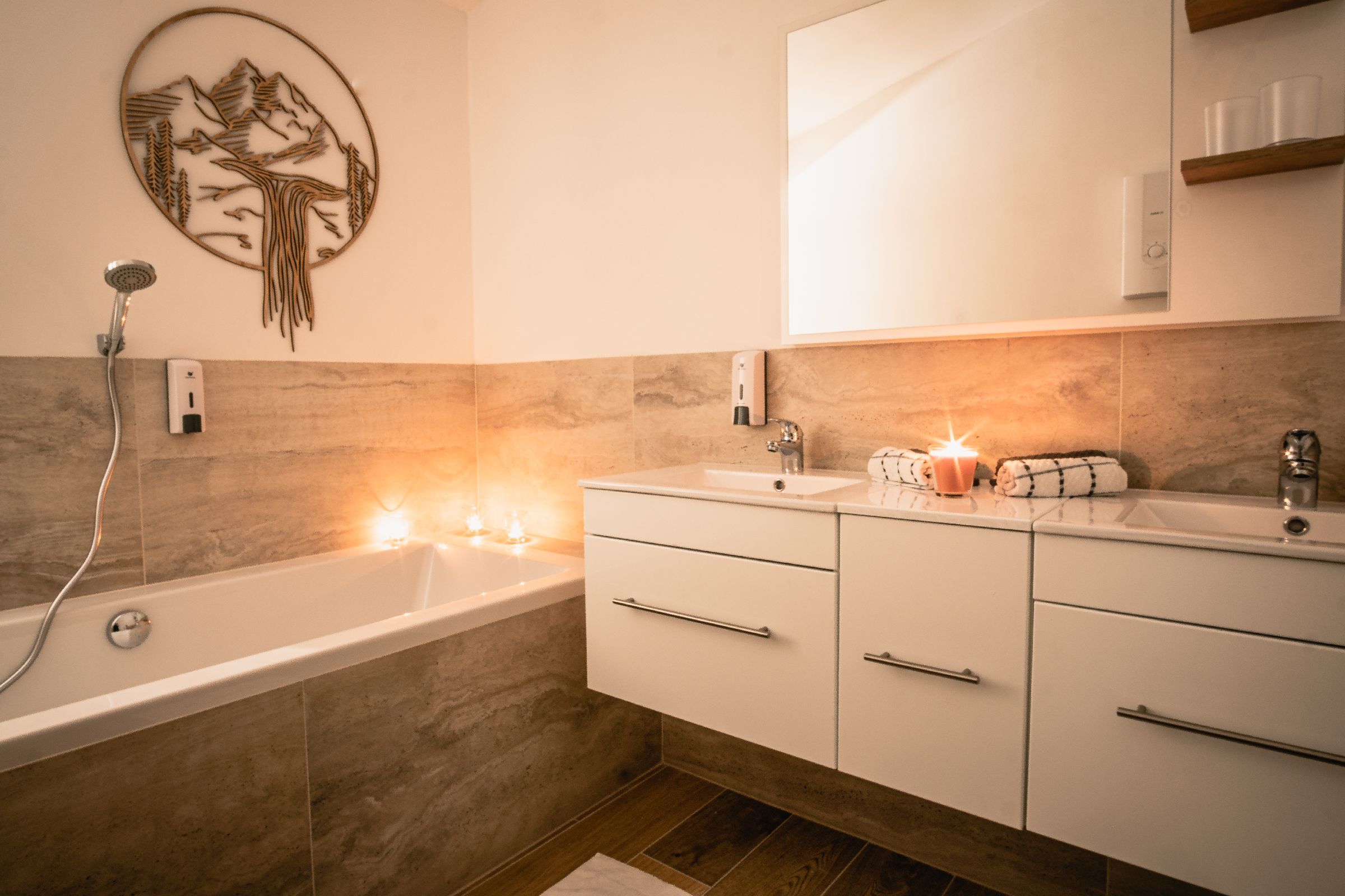 • Große Badezimmer mit Dusche/Badewanne