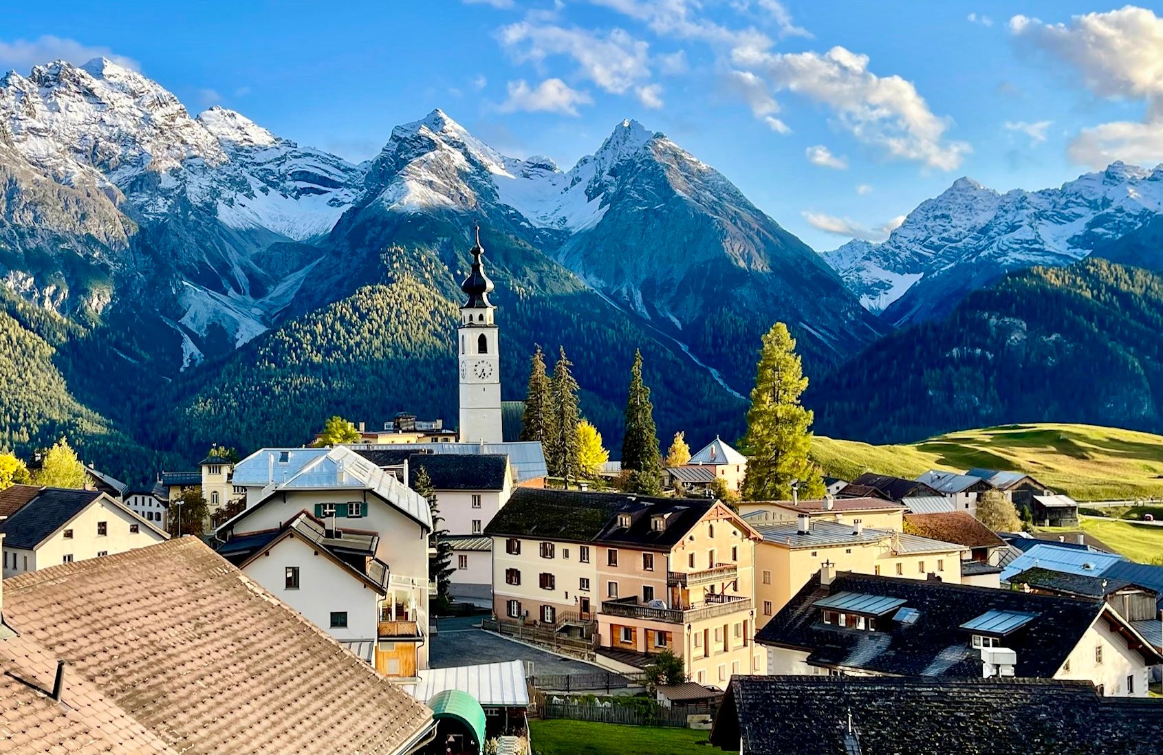 Das Dorf Ftan liegt auf einer sonnigen Terasse auf 1650m.ü.M. über Scuol im Unterengadin. Mögen Sie Tiere? In Ftan leben sie noch in Ställen im Dorf, die Schafe, Ziegen, Kühe, Wasserbüffel und Hühner.