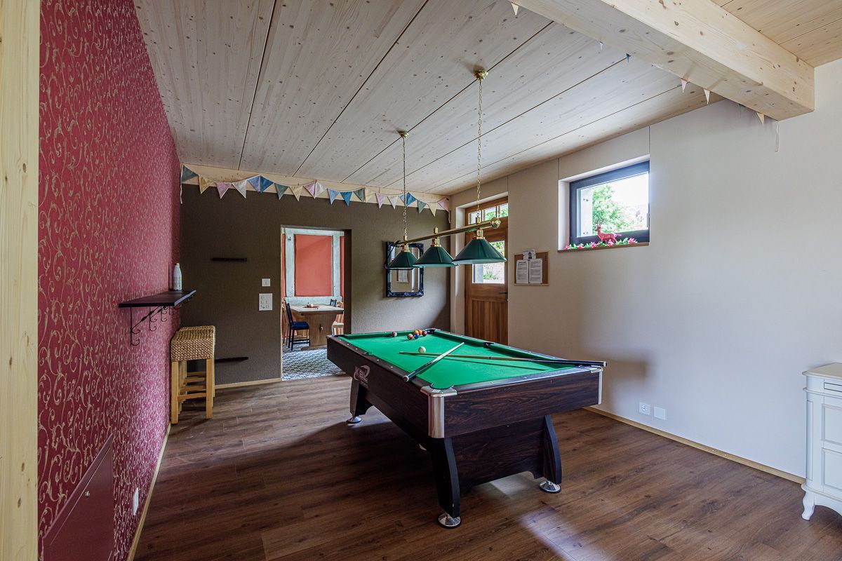 Im Innenbereich erwartet Sie eine voll ausgestattete Wohnkultur mit allem, was das Herz begehrt. Vom Induktionsherd über eine Spülmaschine bis hin zur Kapsel-Kaffeemaschine in der Küche – hier können Sie nach Herzenslust kulinarische Köstlichkeiten zaubern. Die Bäder sind mit Dusche und Badewanne ausgestattet; eine Regendusche verspricht zusätzlichen Komfort. Für gemeinsame Abende steht ein Smart-TV zur Verfügung, während ein Billardtisch und viele Spielsachen den Kindern viel Freude bereiten werden. Die Fußbodenheizung sorgt in allen Räumen für angenehme Wärme, und für die Wäsche stehen eine Waschmaschine und ein Wäschetrockner zur gemeinschaftlichen Nutzung bereit.
