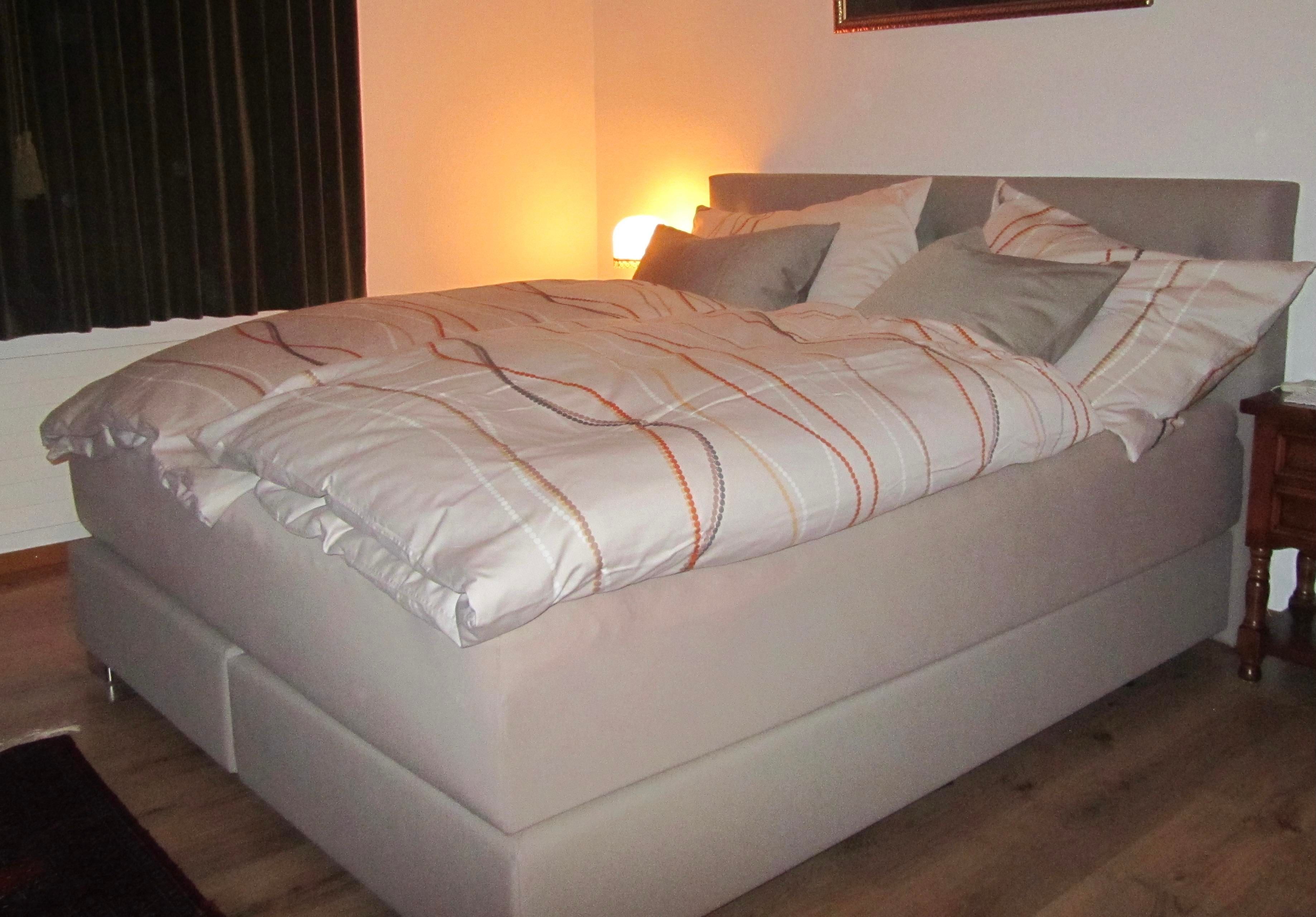 Der Schlafraum ist mit einem hochwertigen Boxspringbett (unteilbar), 180x200cm, Kasten und Kommode ausgestattet.