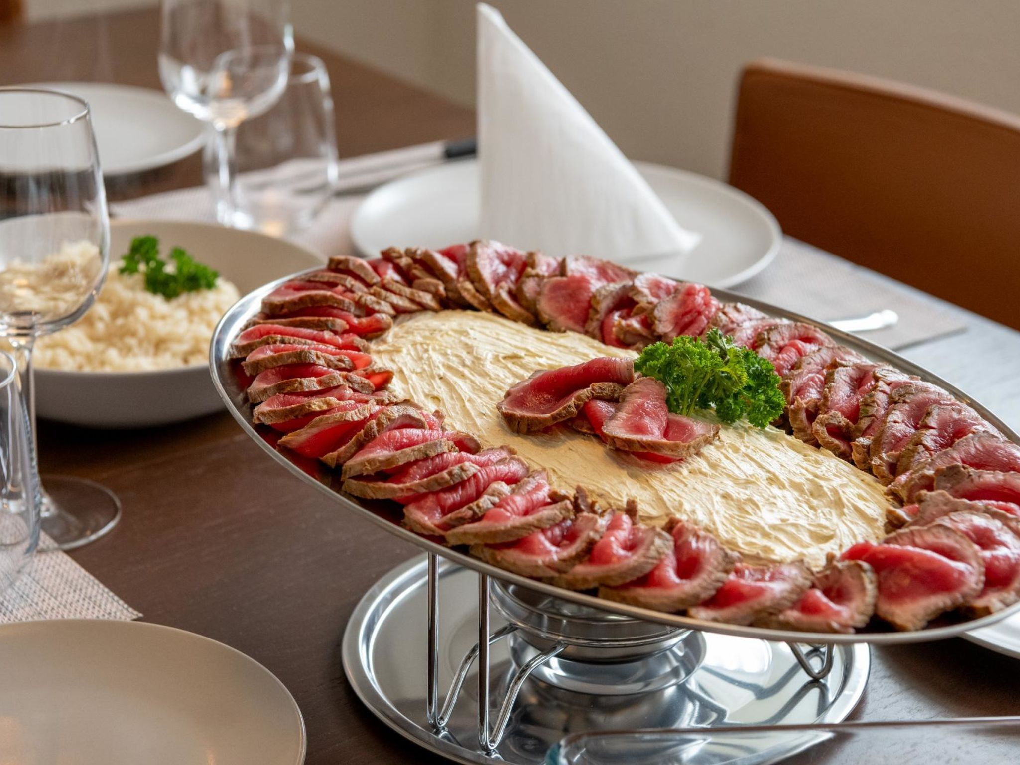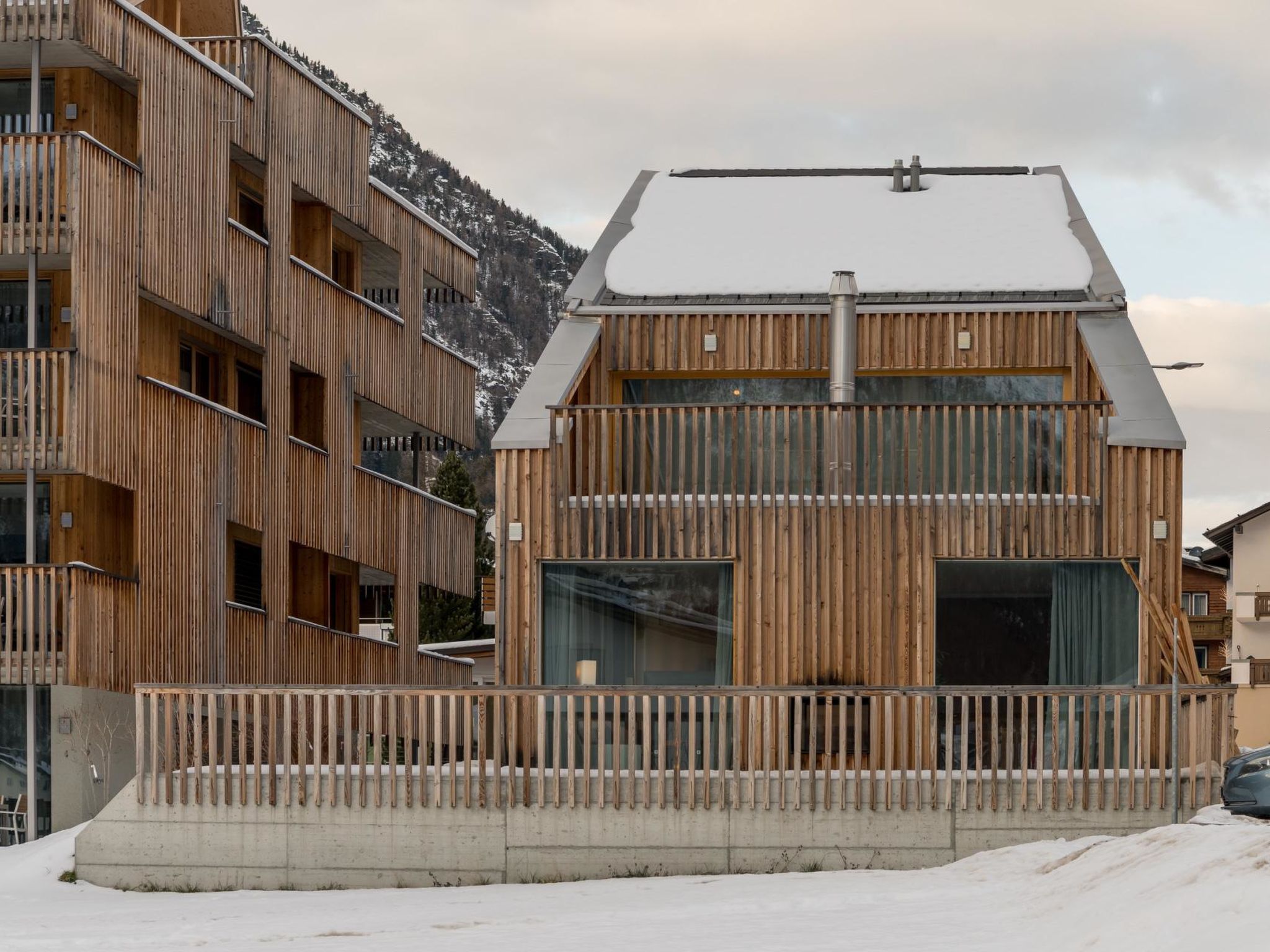 110 m2. Weitere Angaben des Anbieters: Montela Holiday Stay – Ihr eigenes Ferienhaus für flexible Ferien in Saas-Grund Das Montela Pavillon bietet alles, was man sich in den Ferien wünscht. Ideal für Familien mit Teenies oder Familien, die mit den Grosseltern anreisen und zusammen unter einem Dach ihre Ferien verbringen möchten. Das Ferienhaus auf drei Stockwerken bietet Platz für 6-8 Personen – mit Balkon und Aussensitzplatz im Herzen von Saas-Grund. Ideal für unabhängige Gäste, die den Komfort einer Ferienwohnung mit optionalen Services kombinieren möchten. Das Montela Pavillon ist Teil von Montela Apartment-Hotel & Resort und liegt zentral an der Bushaltestelle unter dem Berg Die Talstation der Bergbahnen Hohsaas ist ca. 5 Minuten zu Fuss entfernt. Das alleinstehende Ferienhaus eignet sich besonders für Familien mit Teenies oder Familien, die mit den Grosseltern und die den Komfort und den Extra-Service schätzen sowie erholsame Ferien in Saas-Grund suchen. Auf Wunsch können unsere Montela Holiday Stay Gäste von unserem einzigartigen und exklusiven Verpflegungsangebot mit Lieferung direkt vor Ihre Tür profitieren! Wir liefern Ihnen ein ausgewogenes & regionales Frühstück oder delikate Fleisch- und Käsespezialitäten zur eigenen, einfachen Zubereitung direkt in der Unterkunft und Sie können es sich in den eigenen 4 Wänden bequem machen. Fragen Sie uns! Geniessen Sie im Sommer wie im Winter unbeschwerte Ferien auf den Saaser Wander- und Bikerouten oder auf den nahe gelegenen Ski- und Langlaufloipen in der Ferienregion Saas-Fee/Saastal. Es steht Ihnen 1 kostenloser Parkplatz vor der Unterkunft zur Verfügung. Hunde willkommen. Montela Pavillon mit 3 Schlafzimmern und 2 Badezimmern auf 3 Stockwerken (Montela Holiday Stay) Zentral gelegenes, alleinstehendes Ferienhaus (Nichtraucher) mit Balkon und Aussensitzplatz, ca. in 5 Gehminuten von der Talstation Hohsaas entfernt. Das Montela Pavillon mit 5 Schlafzimmern und 3 Badezimmern bietet alles, was man sich in den Ferien wünscht. Das alleinstehende Ferienhaus auf drei Stockwerken bietet Platz für bis zu 8 Personen und verfügt über einen privaten Eingang. Weitere Ausstattungsmerkmale: Schlafzimmer im Obergeschoss mit Doppelbett (160x200cm) Schlafzimmer im Obergeschoss mit Doppelbett (180x200cm) in der Galerie (Benützung auf eigene Gefahr, Zugang mit Leiter) grosses Schlafzimmer im Untergeshoss mit 4 trennbaren Einzelbetten (90x200cm) Badezimmer mit Dusche/WC WC-Raum mit 2 abschliessbaren WC's, zwei Lavabos Duschraum 2 voll ausgestattete Küchen (je eine im Ober- und Erdgeschoss) mit Kühlschrank, Gefrierfach, Backofen, Glaskeramikherd mit 4 Platten, Geschirrwaschmaschine, Kaffeemaschine (Nespresso-Maschine und Filterkaffee), Wasserkocher, Toaster, Saftpresse sowie Raclette-Ofen und Fondue-Set Essbereich für 4 Personen im Obergeschoss und grosszügiger Essbereich für bis zu 8 Personen im Erdgeschoss Wohnbereich mit Flatscreen (Apple-TV) und Radio top Highspeed-WLAN Balkon mit Gartenmöbeln im Obergeschoss grosse Terrasse mit Gartenmöbeln im Erdgeschoss Waschmaschine und Tumbler im Untergeschoss Skiständer und Garderobe Treppen in der gesamten Unterkunft, kein Aufzug vorhanden kein Aufzug vorhanden Zugang zum Doppelbett nur über eine Leiter (auf eigene Gefahr) Hunde sind willkommen. Montela Pavillon ist ab 2 Nächten buchbar. Im Preis inbegriffen sind alle Nebenkosten (Strom, Wasser, Heizung), Parkplatz, Internet und Rezeptionsservice sowie Endreinigung und Bett- und Frottierwäsche. Das erwartet Sie als Montela Holiday Stay Gast: Kostenfreie Stornierung bis 14 Tage Check-In ab 16.00 Uhr, Check-Out bis 9.00 Uhr (Late Check-Out auf Anfrage in der Zwischensaison) Frühstück & Brötchenservice optional buchbar (kostenpflichtig) Selbstbedienung im Montela Shop (kostenpflichtig) Kitchen Essentials & Wasser bei Anreise inkludiert (einmalig) Zimmerreinigung auf Wunsch (kostenpflichtig) Endreinigung inklusive Bett- & Frottierwäsche einmalig pro Aufenthalt inklusive Optional buchbar: feine Fleisch- und Käsefondues direkt in Ihrer Unterkunft. Geniessen Sie ein delikates Fondue Chinoise oder Gletscher Fondue mit frischem, hochwertigem Fleisch von der heimischen Metzgerei (je CHF 49.- pro Person). Oder ein feines Käsefondue (pro 2 Personen CHF 39.-) von der regionalen Schaukäserei und einem frischen Bauernbrot aus unserer hauseigenen Bäckerei. Fragen Sie uns! Exklusive und vor Ort zu bezahlen: Kurtaxe Sommer (01.06. - 31.10.): CHF 7.- für Erwachsene/Nacht, CHF 3.50 für Kinder (6 - 15.99 Jahre). Kurtaxe Winter (01.11. -31.05.): CHF 4.50 für Erwachsene/Nacht, CHF 2.25 für Kinder (6 - 15.99 Jahre). Aufpreis für Hunde: CHF 10.-/Nacht. Kinderbettchen, Kinderbettzeug und Kinderstuhl auf Anfrage erhältlich (kostenlos).