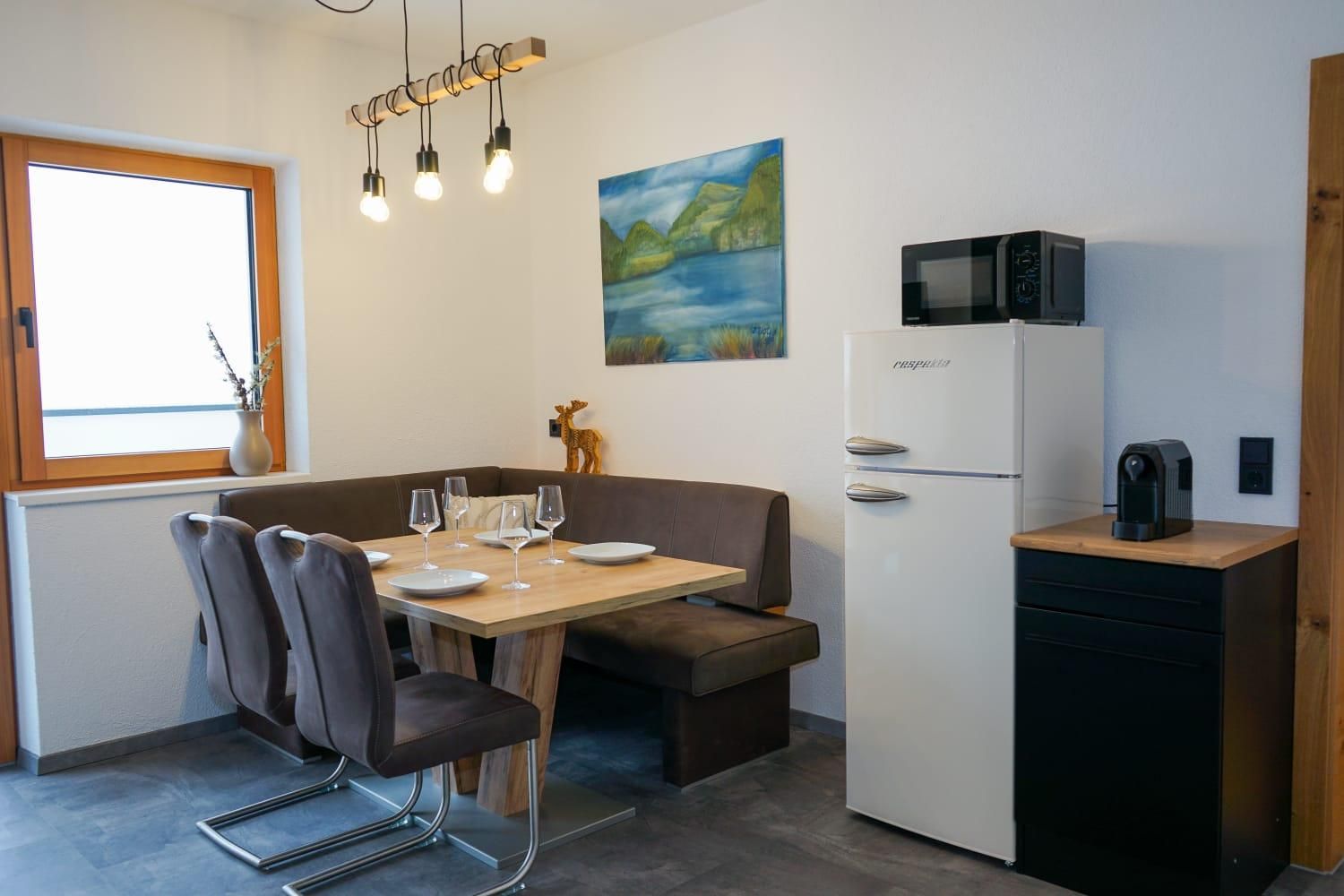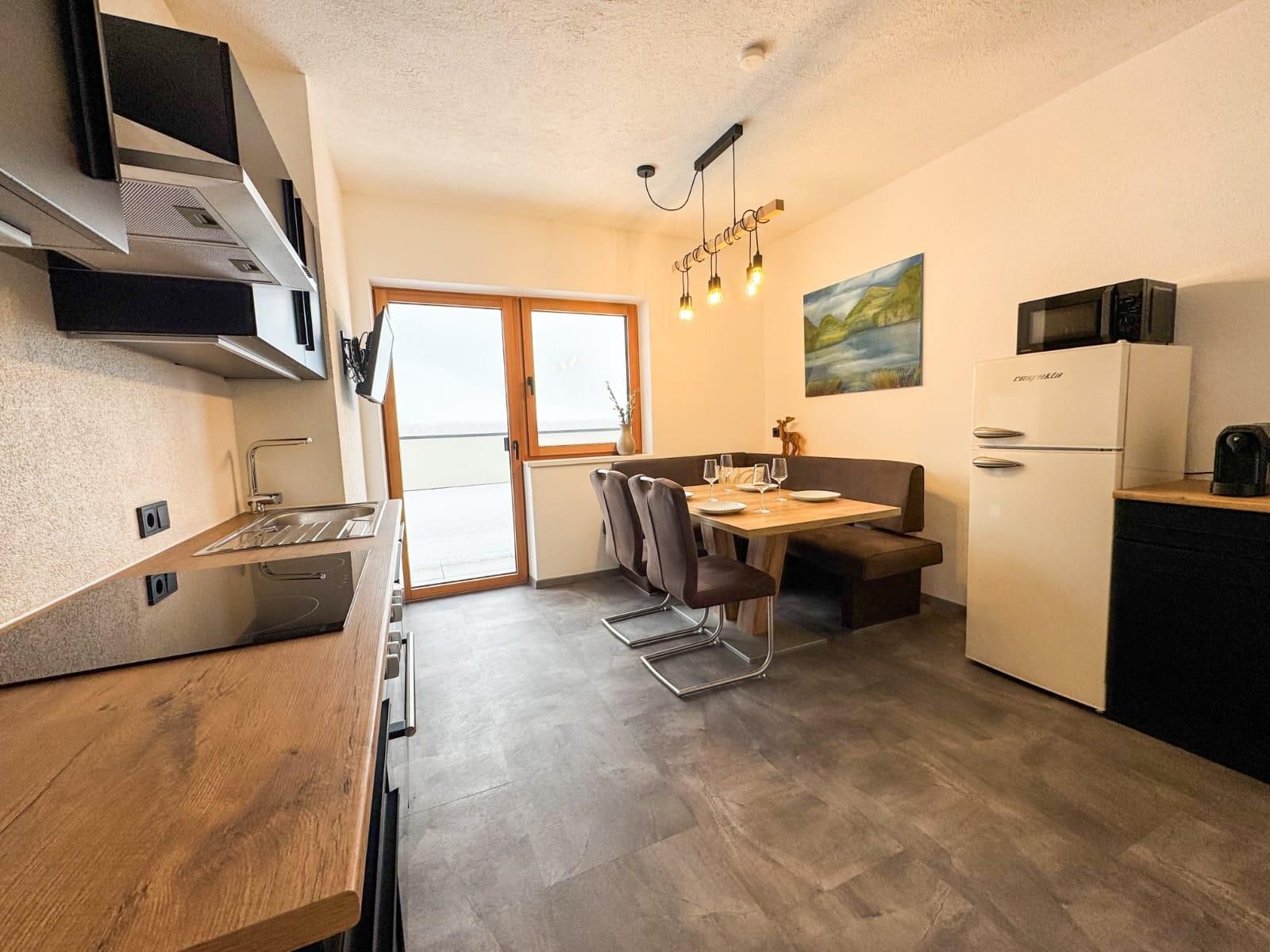 Das stilvolle Appartement Emilia (ca. 54 m²) vereint Komfort und alpines Wohlgefühl. Zwei gemütliche Doppelzimmer, ein modernes Badezimmer mit Dusche/WC und Haarföhn sowie eine hochwertig ausgestattete Wohnküche (Cerankochfeld, Backrohr, Kühlschrank/Gefrierfach, Geschirrspülmaschine, Mikrowelle, Toaster, Kapsel-Kaffeemaschine, Wasserkocher uvm.) bieten beste Voraussetzungen für erholsame Tage. Ein besonderes Highlight ist die großzügige, möblierte Terrasse, die einen weiten Blick auf die umliegende Bergwelt eröffnet.