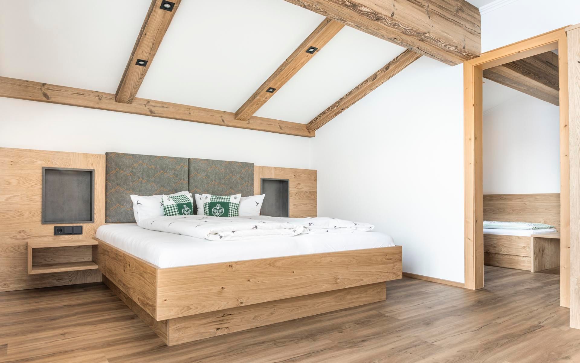 Ob im Urlaub mit der Familie in der Ferienwohnung oder Erholung zu zweit im Doppelzimmer – der Moarbauer bietet für jeden die passende Unterkunft. Unsere 4 Appartements mit extra Kinderzimmer sind 50-60m² groß und bieten Platz für 2-6 Personen. Mit viel Holz und Liebe zum Detail eingerichtet, werden Sie sich hier schon beim ersten Betreten wie zuhause fühlen. Geschirrspüler, Mikrowellen, Herd, Backrohr, Wasserkocher und Kaffeemaschine runden den Komfort der Wohnküchen ab. In Ihrem Urlaub zu zweit empfiehlt sich ein Aufenthalt in unseren hellen und geräumigen Zimmern, welche mit einer gemütlichen Sitzecke, einem neuen Badezimmer, Kabel-TV sowie einem Balkon ausgestattet sind.