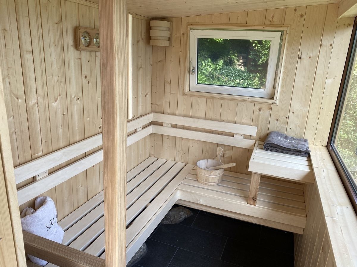 Ein besonderes Highlight ist die eigene Sauna, die Entspannung zu jeder Jahreszeit garantiert.