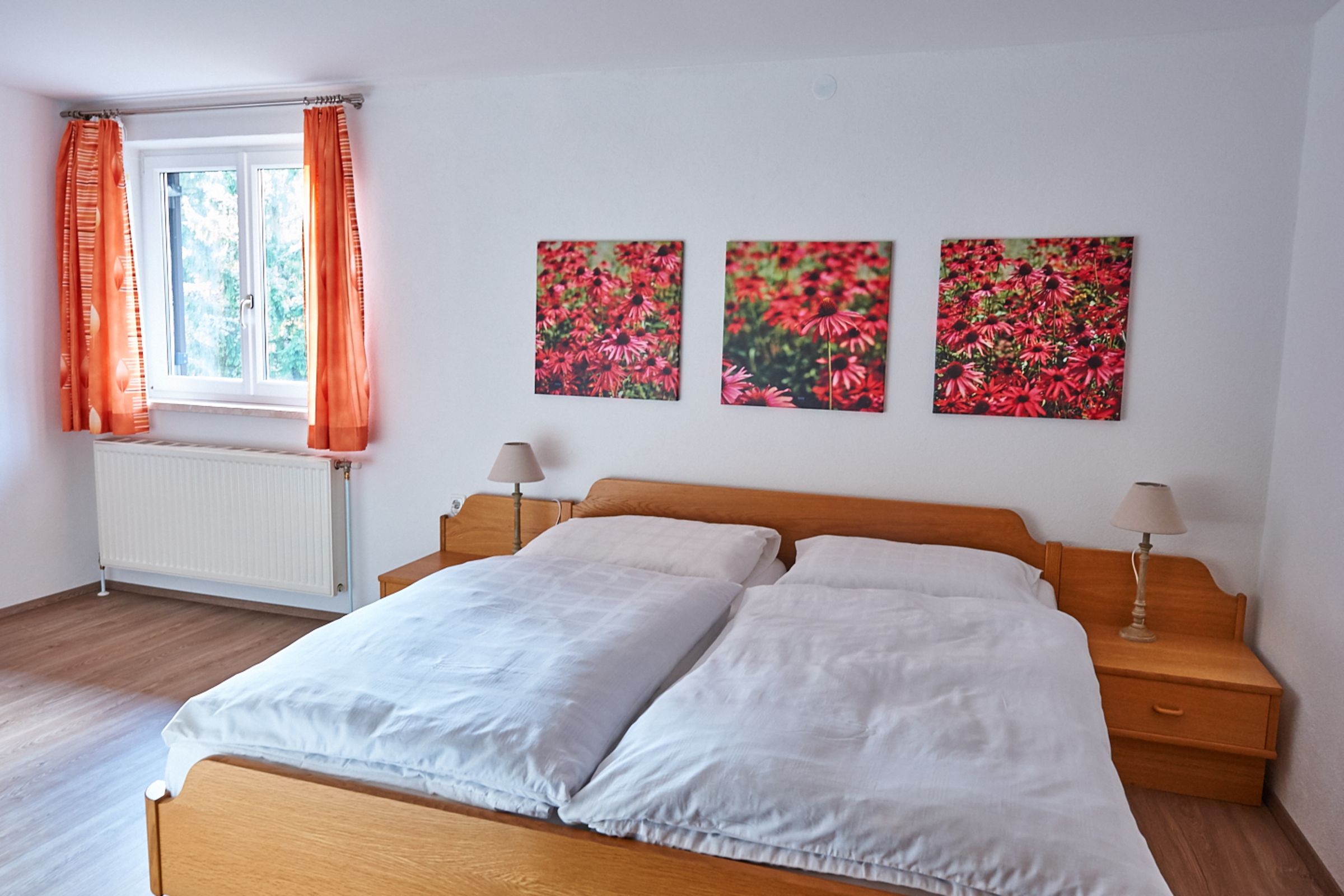 Wählen Sie aus drei gemütlich mit hellen Farben eingerichteten Ferienwohnungen oder vier Doppelzimmern mit Bad+WC.