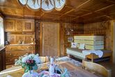 - Wohnbereich mit ausziehbarer Couch, Flachbild TV, Kachelofen