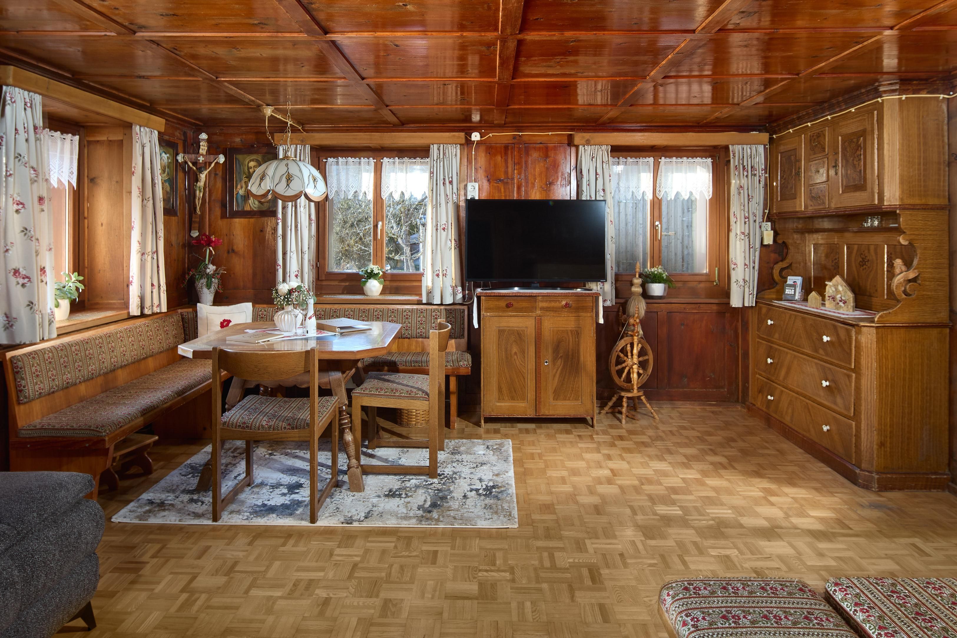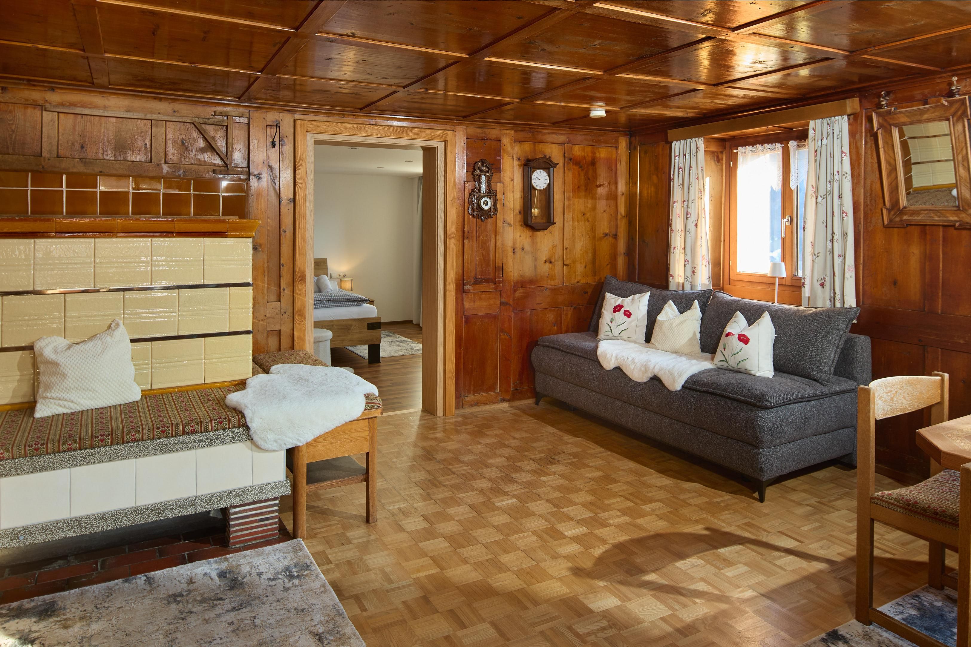 Ein Schlafzimmer und eine heimelige Bauernstube mit Kachelofen bieten vielfältige Schlafmöglichkeiten