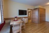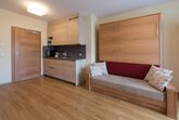 Im Frühjahr 2016 komplett saniert!!! Schlafzimmer: * Handgefertigte Zirbenholzmöbeln * Doppelbett mit hochwertigen QUL-zertifizierten Relax-Matratzen * Kabel-TV * Balkon mit Talblick und Morgensonne Badezimmer: * Waschtisch * Dusche * WC * Handtuchtrockner * Leistungsstarker Fön Wohnraum: * Gemütliche Sitzecke mit Tisch * Kabel-TV * Couch (verschwindet bei Bedarf in der Wand und ein Doppelbett wird hervorgezaubert) * Stockbett (verschwindet in der Wand, wenn es nicht benötigt wird) Küche: * 2 Herdplatten * Mikrowelle * Kühlschrank * Kaffeevollautomat * Geschirrspüler * Wasserkocher * Geschirr und Küchentücher Gesamte Suite: * Fußbodenheizung * gratis WiFi