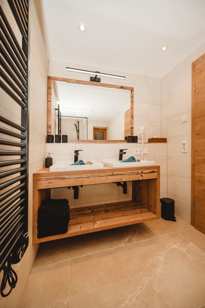 • Badezimmer mit Walk- in Dusche und Doppelwaschbecken