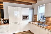 Haus 201, 4-Zimmer-Haus 120 m2 auf 2 Stockwerken. Komfortabel und geschmackvoll eingerichtet: Wohn-/Schlafzimmer mit 1 Doppeldiwanbett und TV (Flachbildschirm). Ausgang zur Terrasse. Offene Küche (Backofen, Geschirrspüler, 4 Glaskeramikplatten, Wasserkocher, Mikrowelle, Tiefkühler, elektrische Kaffeemaschine) mit Esstisch. Sep. WC. Holzheizung. Obergeschoss: 2 Doppelzimmer. 1 Zimmer mit 2 Betten. Bad/Dusche/WC. Natursteinboden. Grosser Balkon, Südlage Terrasse. Terrassenmöbel, Balkonmöbel. Schöne Sicht auf die Berge. Zur Verfügung: Internet (WLAN, gratis). Bitte beachten: Nichtraucher-Haus. Feuerlöscher.
