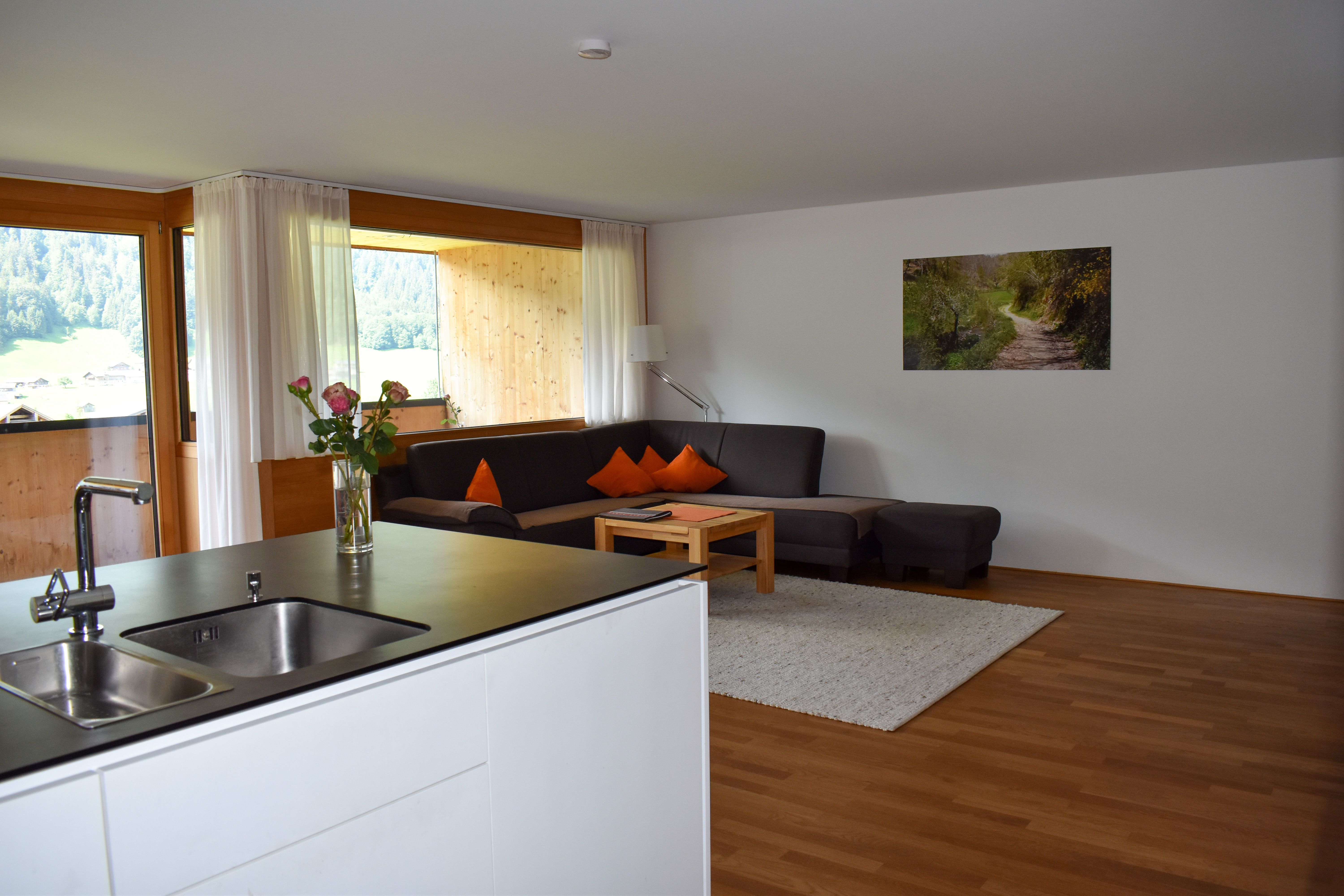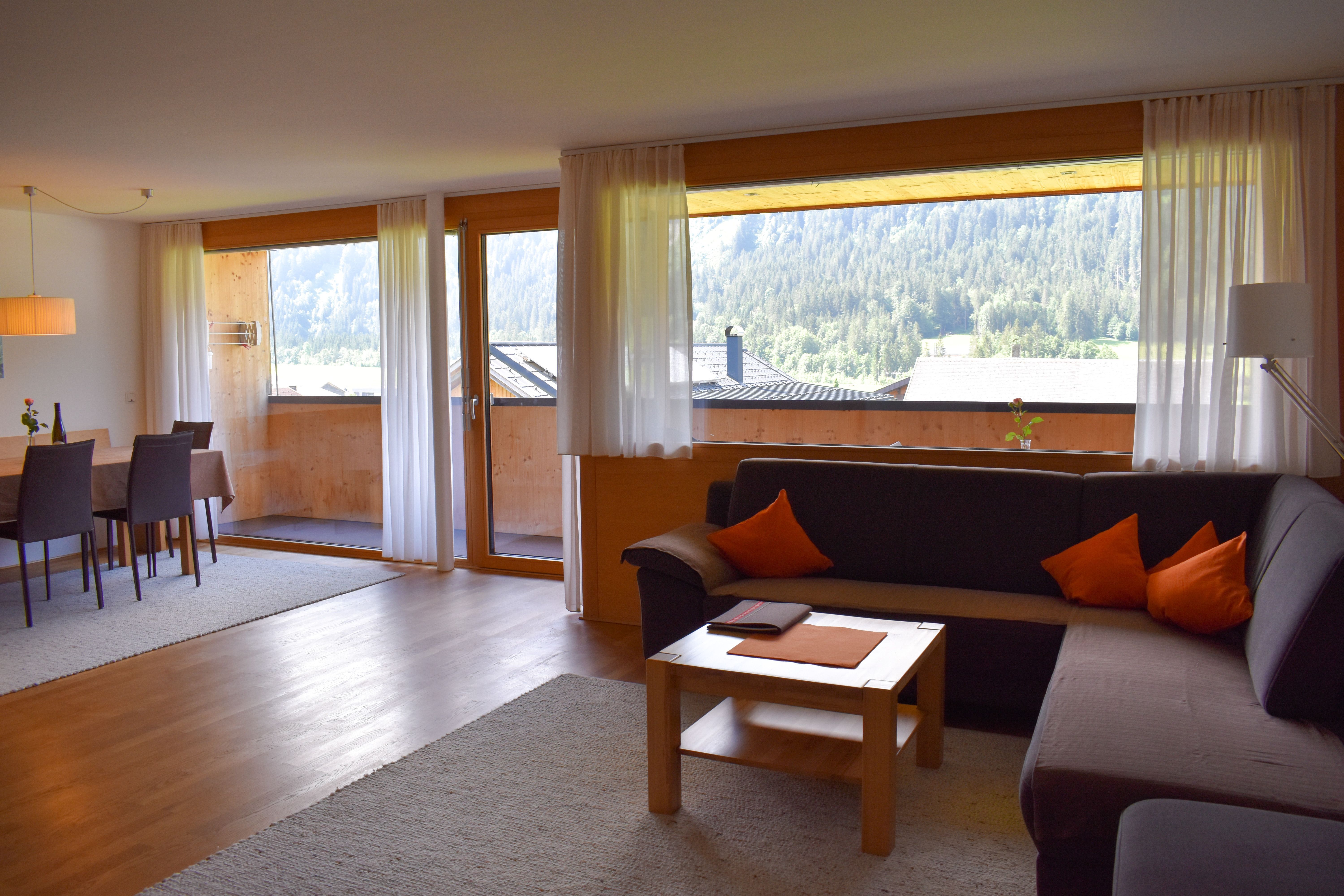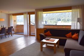Apartment mit Balkon im 1. Obergeschoss für 2 - 4 Personen mit Blick auf die Hochalpe.