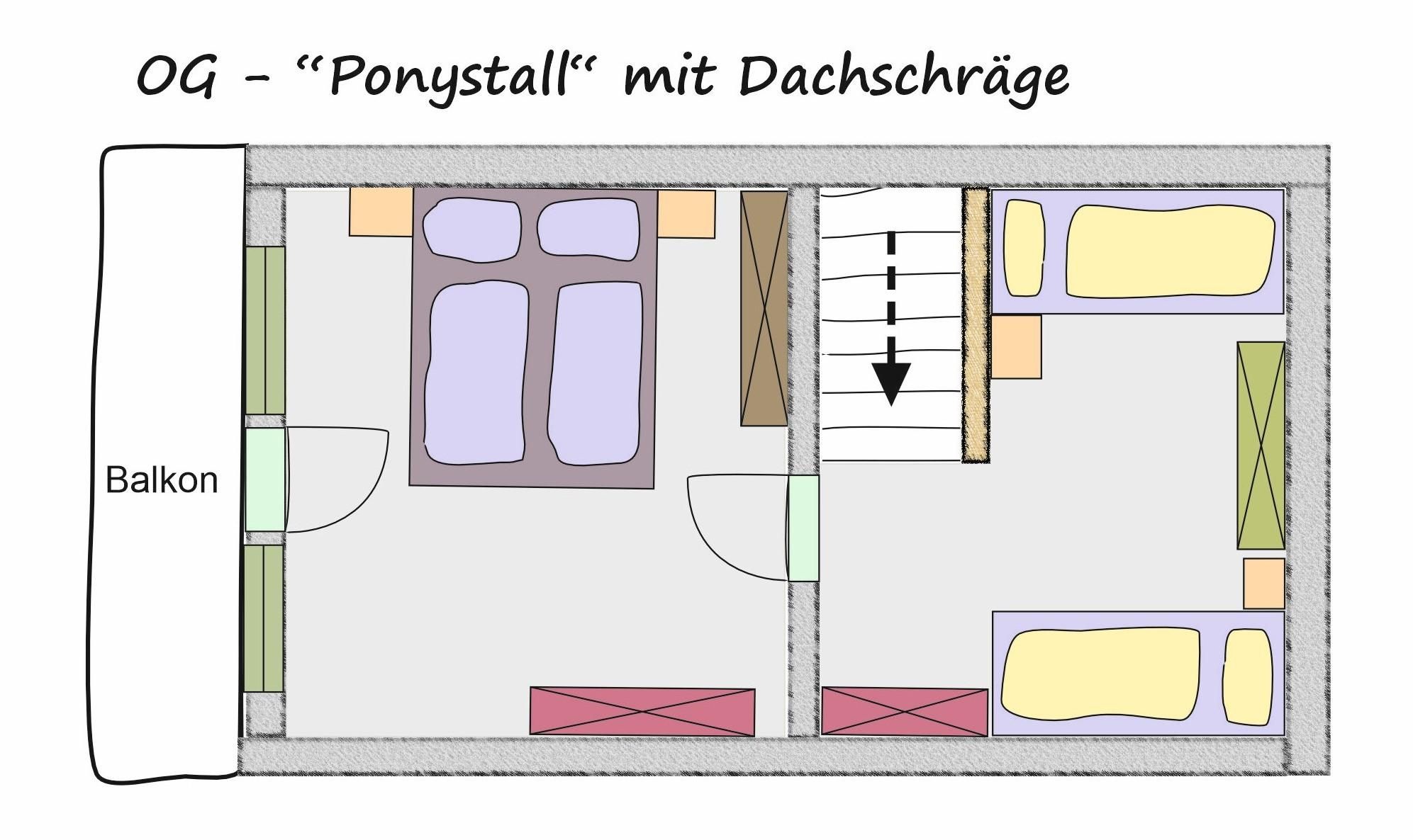 Der Ponystall ist unser Apartment für 4 Personen - 50qm / 2 Stockwerke