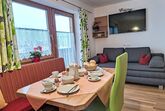 Fichtenblick App. 3, 3-Zimmer-Wohnung 40 m2, im Obergeschoss, Südostlage. Gemütlich eingerichtet: Wohn-/Esszimmer mit Esstisch, Sat-TV und Flachbildschirm. Ausgang zum Balkon. 1 Doppelzimmer. 1 kleines Zimmer mit 1 Bett. Kleine Küche (4 Kochplatten, Backofen, Toaster, Wasserkocher, elektrische Kaffeemaschine). Dusche/WC. Heizung. Parkettboden. Grosser Balkon. Balkonmöbel. Sicht auf die Berge. Zur Verfügung: Kinderhochstuhl, Babybett. Internet (WLAN, gratis). Bitte beachten: Nichtraucher-Unterkunft. Feuerlöscher. Haustiere sind nicht erlaubt.