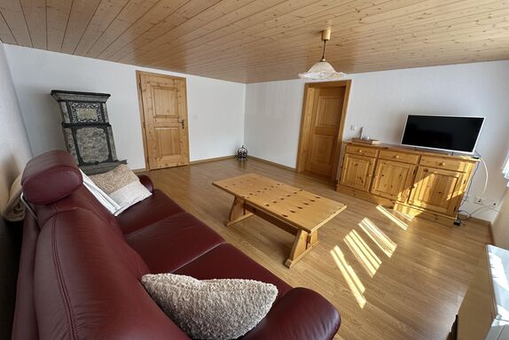 Die Wohnung verfügt über zwei liebevoll eingerichtete Schlafzimmer (ein Doppelbett, zwei Einzelbetten), ein gemütliches Wohnzimmer mit Kachelofen und TV, eine voll ausgestattete Küche (Herd, Backofen, Geschirrspüler) und ein modernes Bad mit Dusche. Kostenloser Parkplatz vor dem Haus, Garage auf Anfrage und gegen Gebühr. Bettwäsche und Handtücher inklusive.
