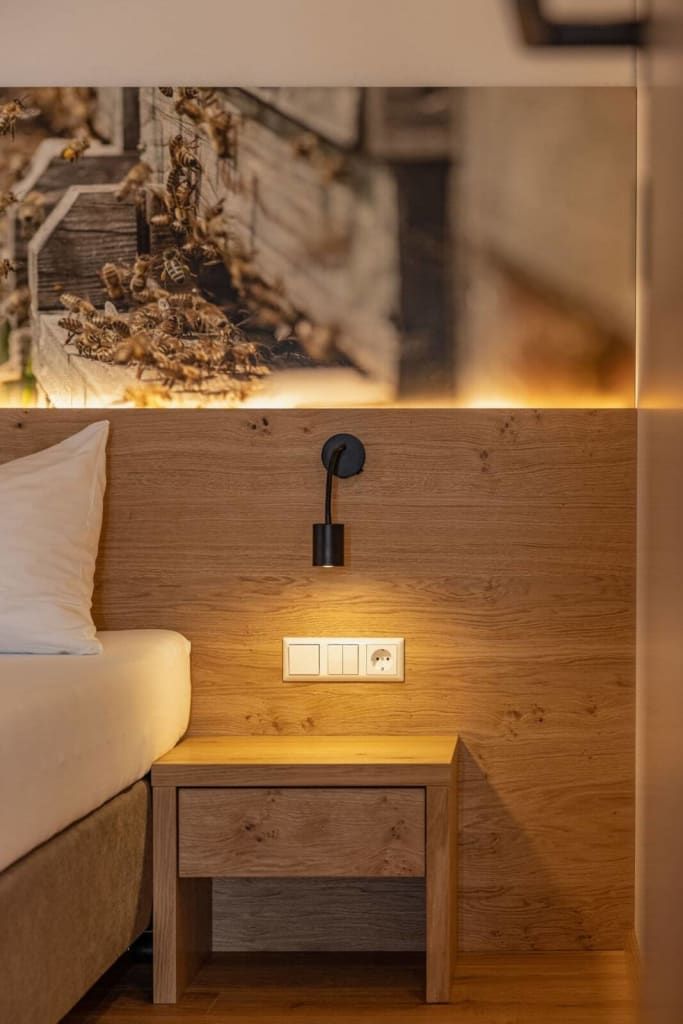 Wohnen in der Honigmanufaktur heißt konkret, die Natur und die Bienen werden ins Apartment der Gäste geholt. In einem einzigartigen Wohnraum kann man einen echten Bienenstock durch einen eingebauten Sichtkamin durch Glas geschützt beobachten. Das wohltuende und medizinisch nachweislich gesunde Aroma, welches durch den Flügelschlag der Bienen entsteht, sorgt zudem für eine ionisierte und gesundheitsfördernde Raumluft. Man wird somit zum „Gast der Bienen“. Kurz gesagt - ein Urlaub zum Schwärmen!