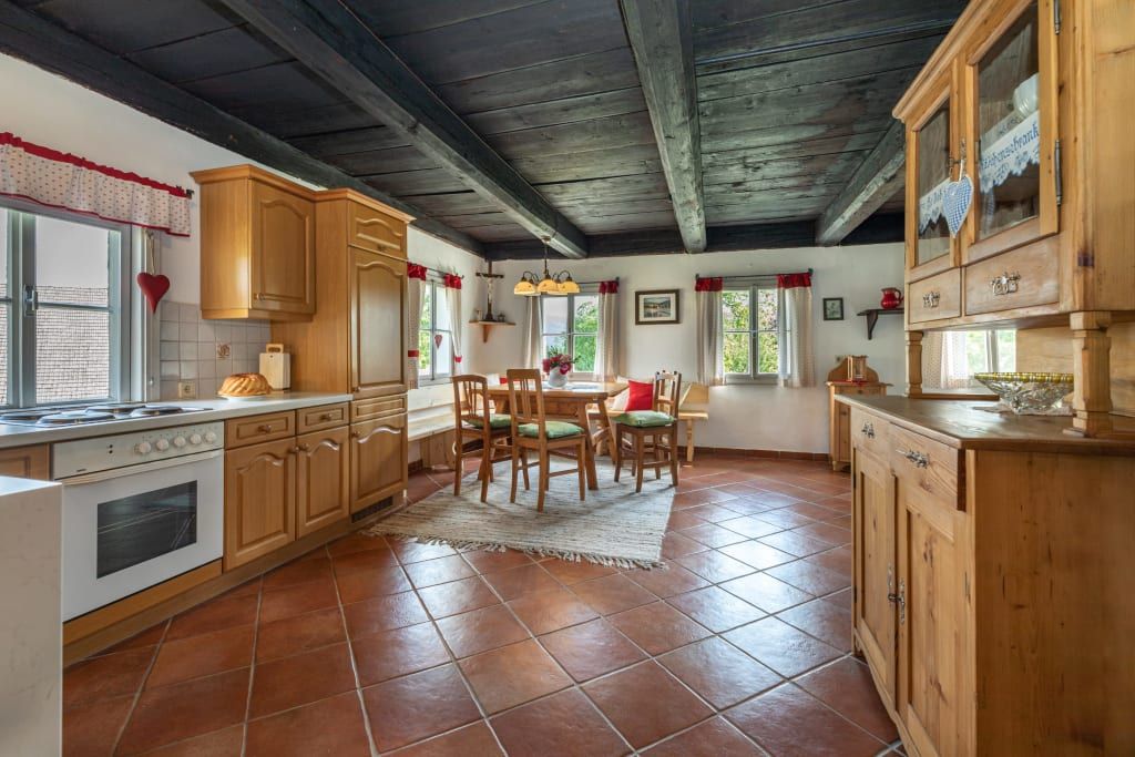 • geräumige Küche mit E-Herd und Holzherd, Geschirrspüler