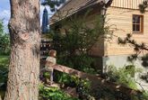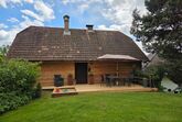 • Schöne Holzterrasse vor dem Haus und viel Grünfläche