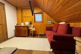 Der großzügige Wohnbereich mit Kamin lädt zu gemütlichen Abenden ein, während die voll ausgestattete Küche mit Holzofen, Geschirrspüler, Backofen, Herdplatte und Kaffeemaschine ideal für gemeinsame Mahlzeiten ist. Das Badezimmer bietet eine Badewanne, Dusche und WC, zusätzlich gibt es eine Waschmaschine für mehr Komfort.