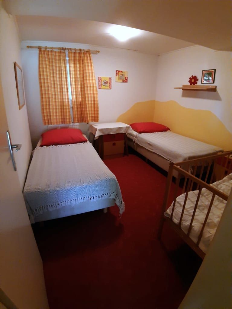 - Ein Schlafzimmer mit TV-Ecke, zweites Schlafzimmer mit 2 Einzelbetten sowie 1 Gitterbett.