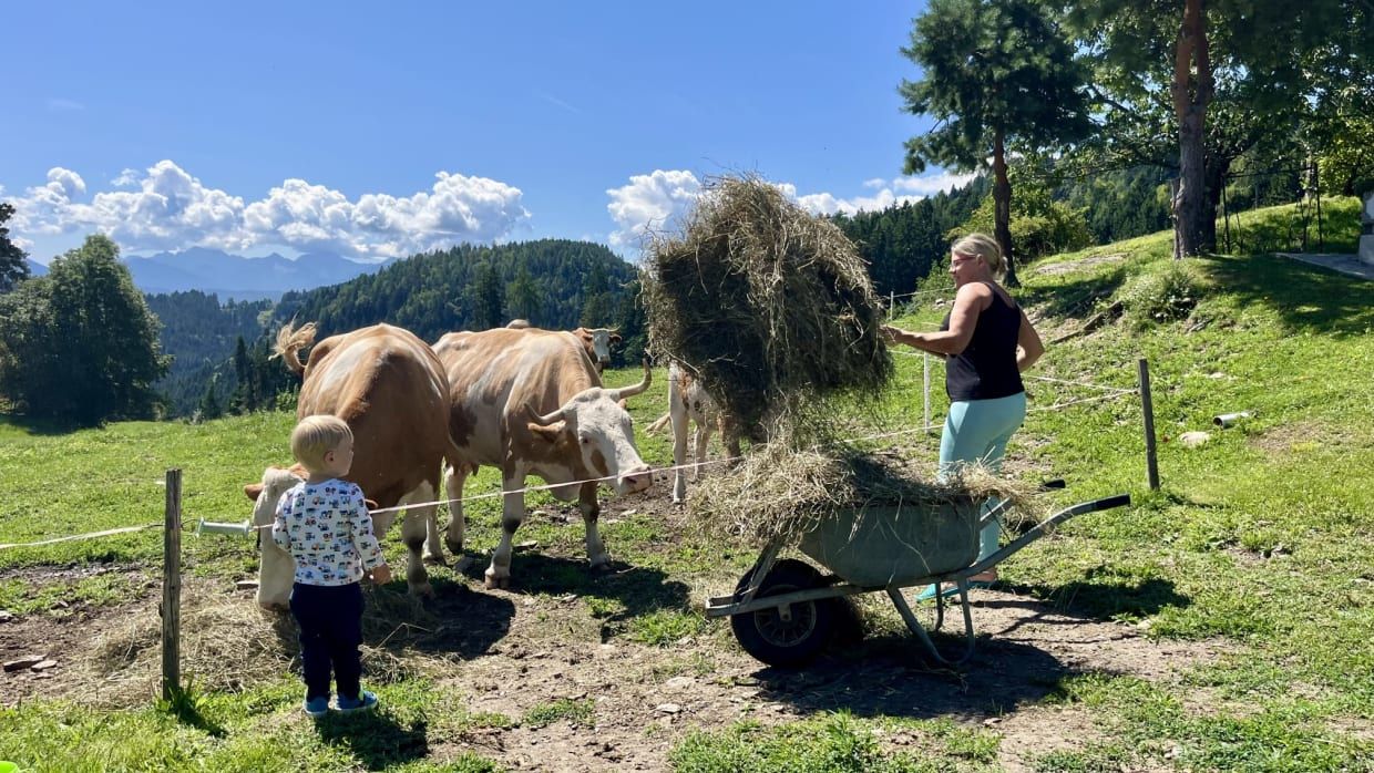 Wer mag, darf einen Blick ins Hofleben werfen: ein Frühstücksei frisch aus dem Hühnerstall holen 🥚🐓, bei der Obsternte helfen 🍎 oder einfach über die angrenzenden Wiesen und Weiden schlendern. Der Stopferhof ist ein kleiner Bergbauernhof mit Hühnern, Hund🐕, Katzen 🐈, Kühen, die im Sommer auf der angrenzenden Weide grasen.