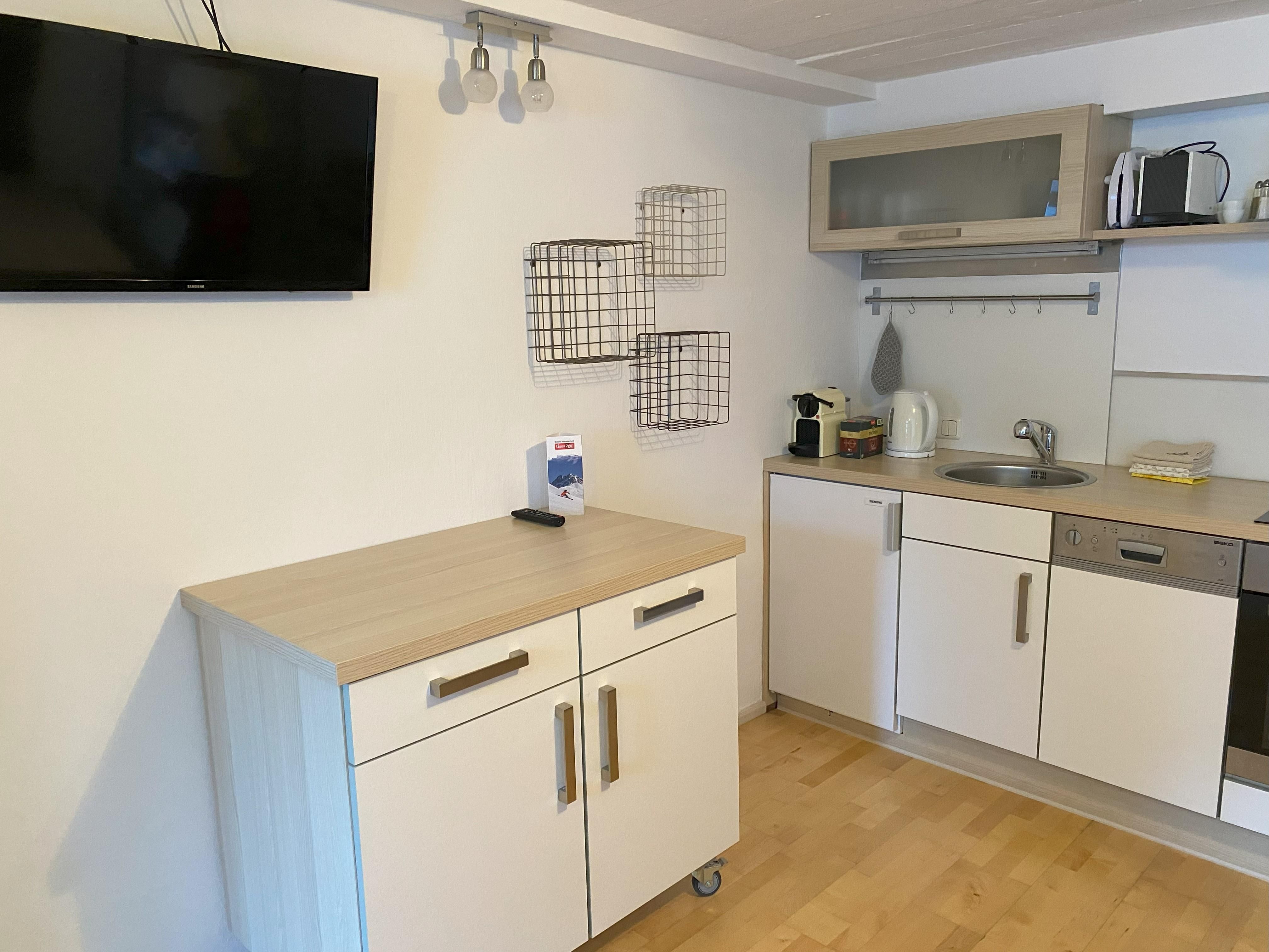 In dieser Wohnung befindet sich 1 Schlafzimmer mit ausziehbarer Couch (1,40x2,00m), großes Badezimmer mit Badewanne inkl. Duschvorrichtung und WC, 1 vollausgestattete Wohnküche mit einem dänischen Ofen und Sitzcouch (wäre auch ausziehbar). Kleiner Vorraum mit Garderobe. Skiabstellraum. ca. 50m²