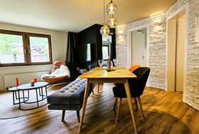 Willkommen in der frisch renovierten 4-Sterne Ferienwohnung mit exklusivem Design und hochwertigen Möbeln. Die Wohnung bietet Platz für bis zu 4 Personen und begeistert mit zwei Schlafzimmern, ausgestattet mit luxuriösen Boxspringbetten (180×200 cm). Jedes Zimmer hat seinen eigenen Charakter – eines mit einer kreativen Gipswand, das andere mit einer edlen Swahili-Wand. Zwei stilvolle Badezimmer im Swahili-Design, eine kompakte Küche mit individuell gestalteter Gipswand sowie ein gemütlicher Wohnbereich mit markanter Steinwand runden das Gesamtbild ab. Mit viel Liebe zum Detail und ausgesuchten Materialien gestaltet, hebt sich das Interior deutlich vom Standard ab – ohne Preisaufschlag. Diese Wohnung ist ideal für Gäste, die Sinn für Ästhetik, Qualität und achtsamen Umgang mit dem Raum mitbringen. Wir freuen uns auf Besucher, die das Besondere suchen – und es zu schätzen wissen.